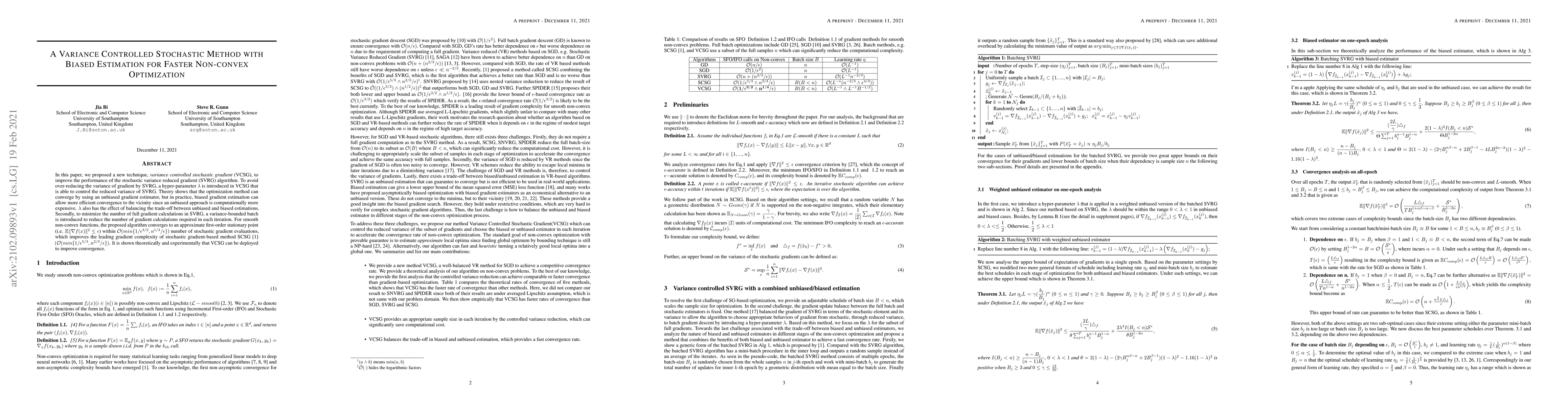 In this paper, we proposed a new technique, {\em variance controlled stochastic gradient} (VCSG), to improve the performance of the stochastic variance reduced gradient (SVRG) algorithm. To avoid over-reducing the variance of gradient by SVRG, a hyper-parameter $\lambda$ is introduced in VCSG that is able to control the reduced variance of SVRG. Theory shows that the optimization method can converge by using an unbiased gradient estimator, but in practice, biased gradient estimation can allow more efficient convergence to the vicinity since an unbiased approach is computationally more expensive. $\lambda$ also has the effect of balancing the trade-off between unbiased and biased estimations. Secondly, to minimize the number of full gradient calculations in SVRG, a variance-bounded batch is introduced to reduce the number of gradient calculations required in each iteration. For smooth non-convex functions, the proposed algorithm converges to an approximate first-order stationary point (i.e. $\mathbb{E}\|\nabla{f}(x)\|^{2}\leq\epsilon$) within $\mathcal{O}(min\{1/\epsilon^{3/2},n^{1/4}/\epsilon\})$ number of stochastic gradient evaluations, which improves the leading gradient complexity of stochastic gradient-based method SCS $(\mathcal{O}(min\{1/\epsilon^{5/3},n^{2/3}/\epsilon\})$. It is shown theoretically and experimentally that VCSG can be deployed to improve convergence.