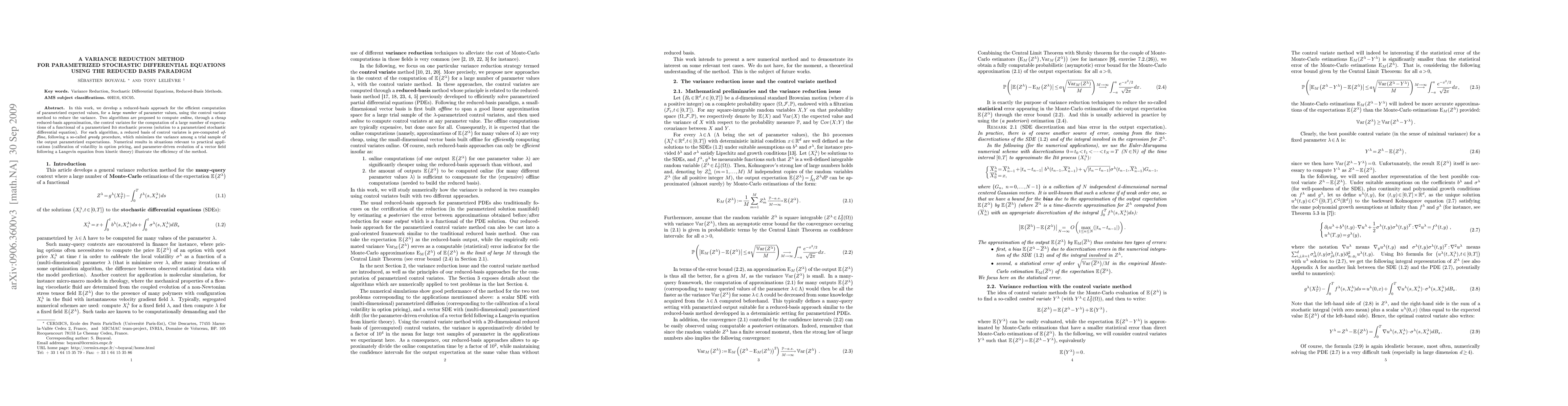 This paper develops a method to efficiently compute parametrized expected values using reduced basis approximation and control variate technique, improving computational efficiency for large numbers of parameter values.