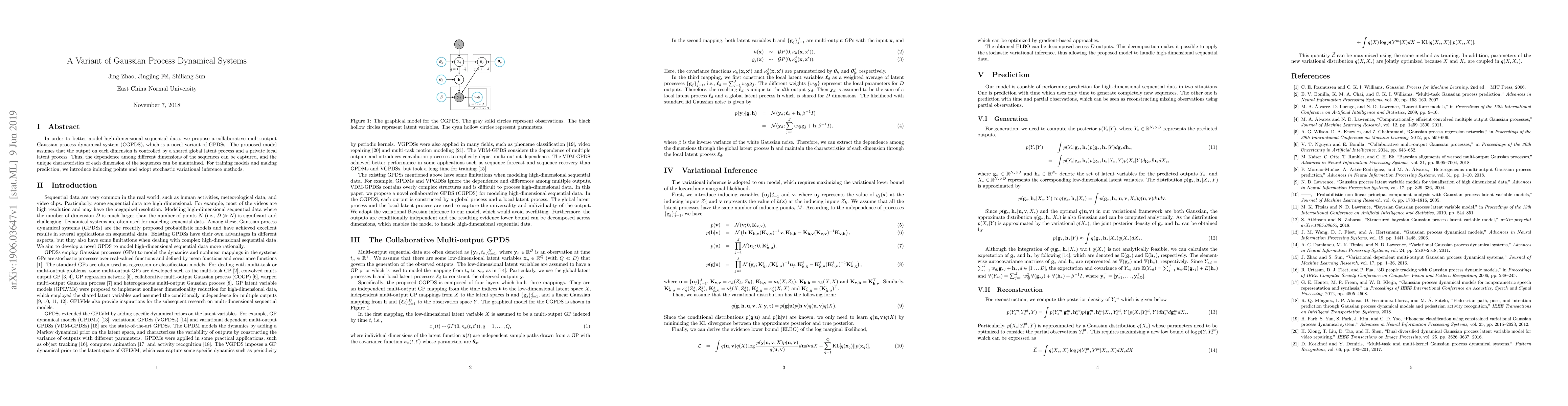 In order to better model high-dimensional sequential data, we propose a collaborative multi-output Gaussian process dynamical system (CGPDS), which is a novel variant of GPDSs. The proposed model assumes that the output on each dimension is controlled by a shared global latent process and a private local latent process. Thus, the dependence among different dimensions of the sequences can be captured, and the unique characteristics of each dimension of the sequences can be maintained. For training models and making prediction, we introduce inducing points and adopt stochastic variational inference methods.