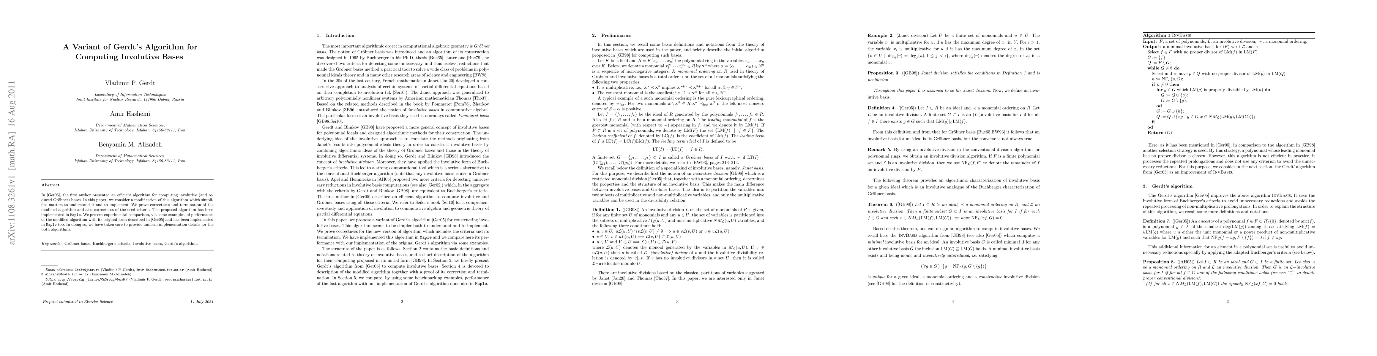 This paper modifies Gerdt's algorithm for computing involutive bases to enhance simplicity and implementation ease. The modified algorithm is proven correct, terminated, and compared experimentally with the original version in Maple, demonstrating improved performance.