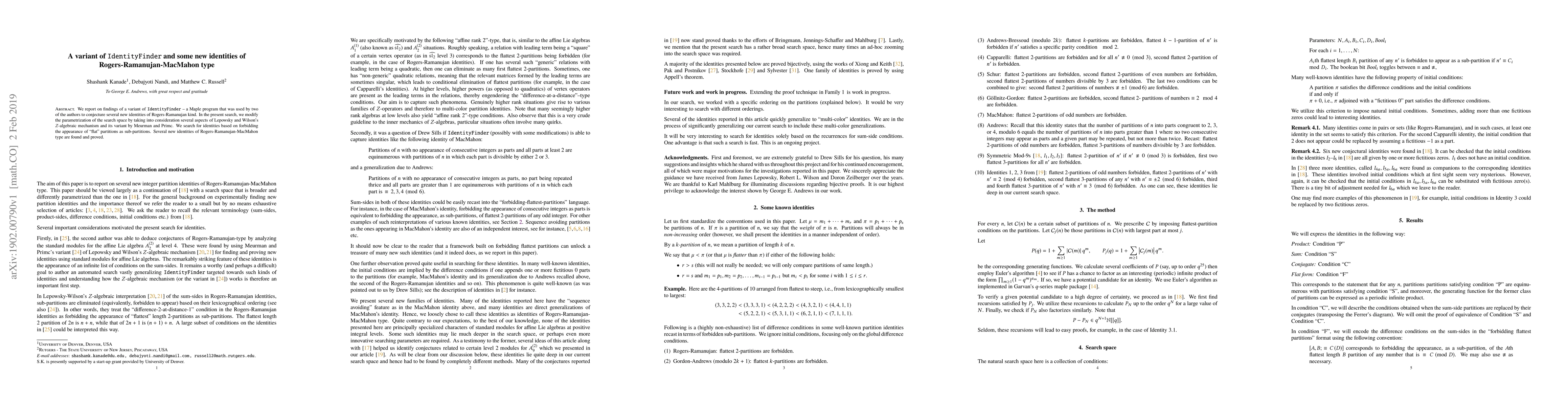 We report on findings of a variant of ${\texttt{IdentityFinder}}$ - a Maple program that was used by two of the authors to conjecture several new identities of Rogers-Ramanujan kind. In the present search, we modify the parametrization of the search space by taking into consideration several aspects of Lepowsky and Wilson's $Z$-algebraic mechanism and its variant by Meurman and Primc. We search for identities based on forbidding the appearance of "flat" partitions as sub-partitions. Several new identities of Rogers-Ramanujan-MacMahon type are found and proved.