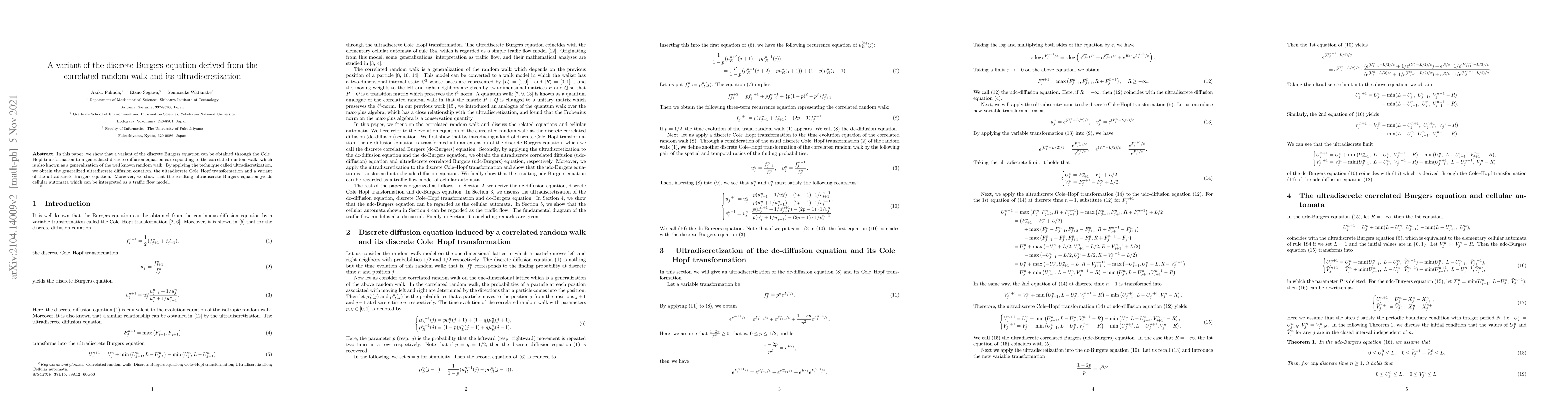 This paper derives a variant of the discrete Burgers equation from a correlated random walk and applies ultradiscretization to obtain an ultradiscrete Burgers equation, which corresponds to a cellular automaton representing a traffic flow model. The process involves the Cole-Hopf transformation and a generalized diffusion equation.