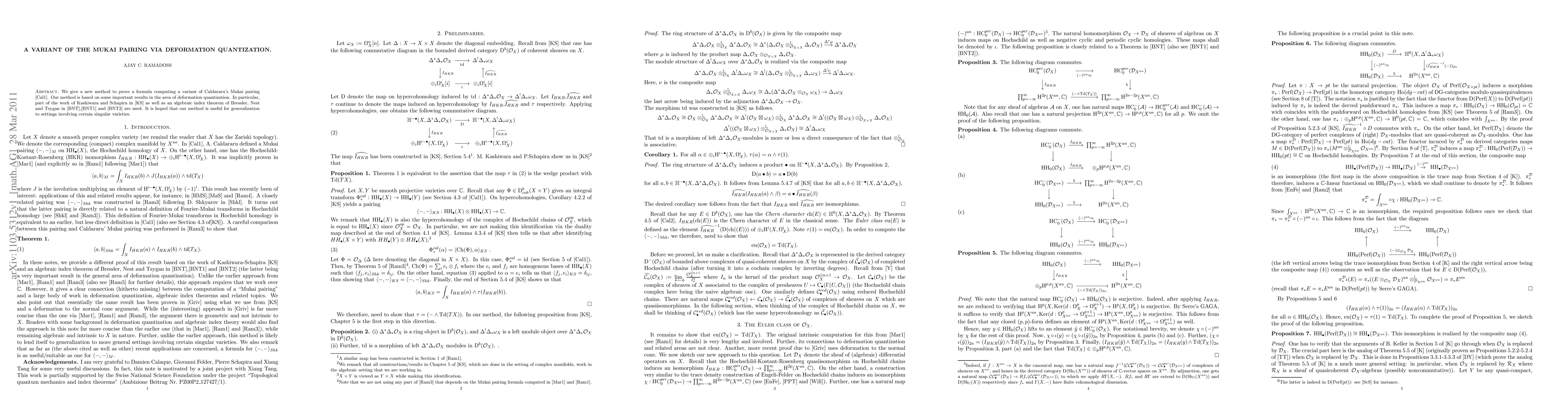 This paper presents a novel method for computing a variant of Caldararu's Mukai pairing, leveraging results from deformation quantization, including contributions by Kashiwara, Schapira, and the algebraic index theorem of Bressler, Nest, and Tsygan. The approach is intended to facilitate generalizations to singular varieties.
