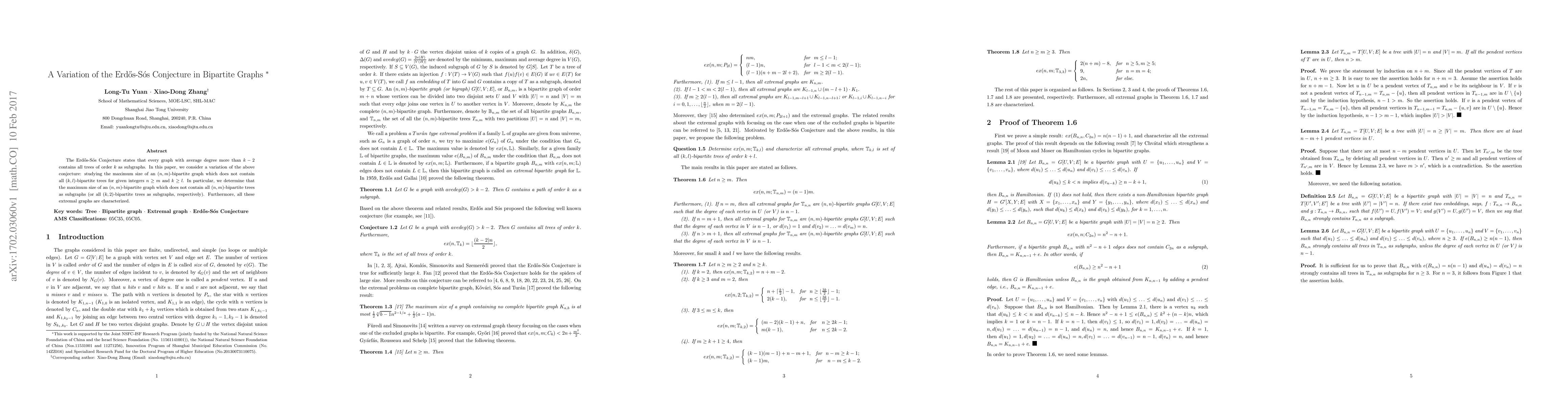 The Erd\H{o}s-S\'{o}s Conjecture states that every graph with average degree more than $k-2$ contains all trees of order $k$ as subgraphs. In this paper, we consider a variation of the above conjecture: studying the maximum size of an $(n,m)$-bipartite graph which does not contain all $(k,l)$-bipartite trees for given integers $n\ge m$ and $k\ge l$. In particular, we determine that the maximum size of an $(n,m)$-bipartite graph which does not contain all $(n,m)$-bipartite trees as subgraphs (or all $(k,2)$-bipartite trees as subgraphs, respectively). Furthermore, all these extremal graphs are characterized.