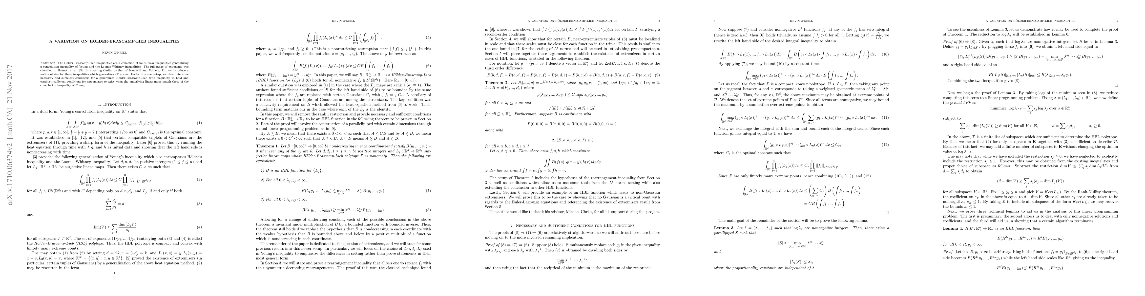 The H\"older-Brascamp-Lieb inequalities are a collection of multilinear inequalities generalizing a convolution inequality of Young and the Loomis-Whitney inequalities. The full range of exponents was classified in Bennett et al. (2008). In a setting similar to that of Ivanisvili and Volberg (2015), we introduce a notion of size for these inequalities which generalizes $L^p$ norms. Under this new setup, we then determine necessary and sufficient conditions for a generalized H\"older-Brascamp-Lieb type inequality to hold and establish sufficient conditions for extremizers to exist when the underlying linear maps match those of the convolution inequality of Young.