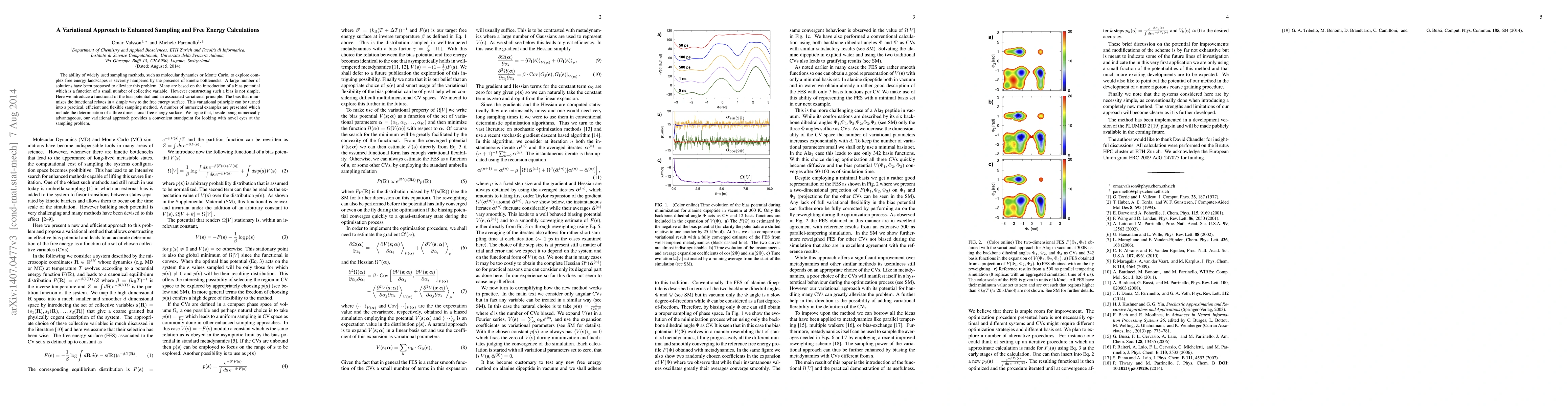 This paper introduces a variational approach to enhance sampling and free energy calculations by minimizing a functional of the bias potential, which simplifies the construction of bias potentials. The method is shown to be practical, efficient, and flexible, providing a novel perspective on sampling problems.