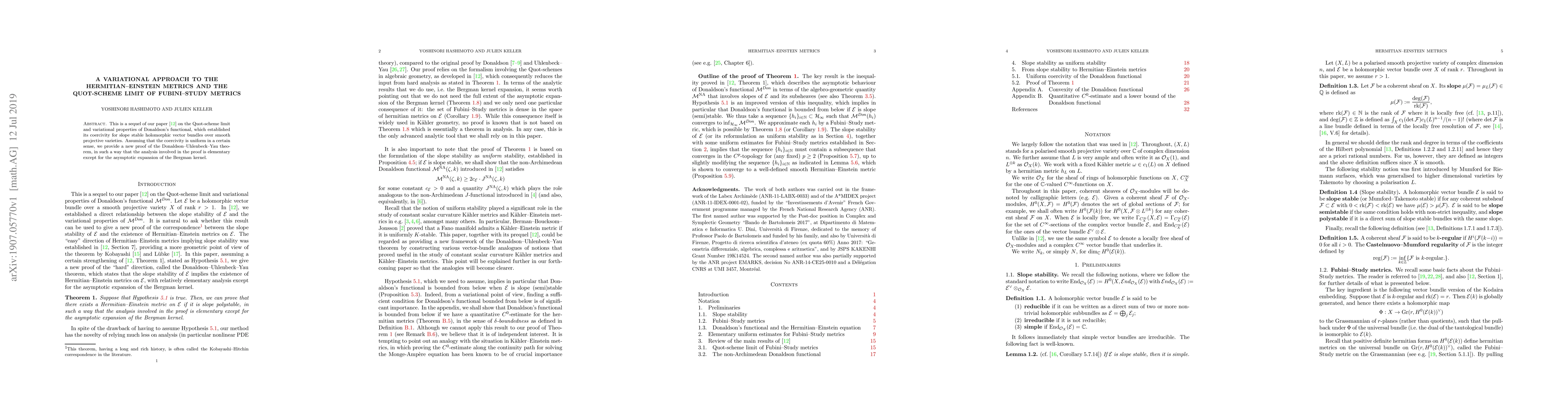 This is a sequel of our paper [arXiv:1809.08425] on the Quot-scheme limit and variational properties of Donaldson's functional, which established its coercivity for slope stable holomorphic vector bundles over smooth projective varieties. Assuming that the coercivity is uniform in a certain sense, we provide a new proof of the Donaldson-Uhlenbeck-Yau theorem, in such a way that the analysis involved in the proof is elementary except for the asymptotic expansion of the Bergman kernel.