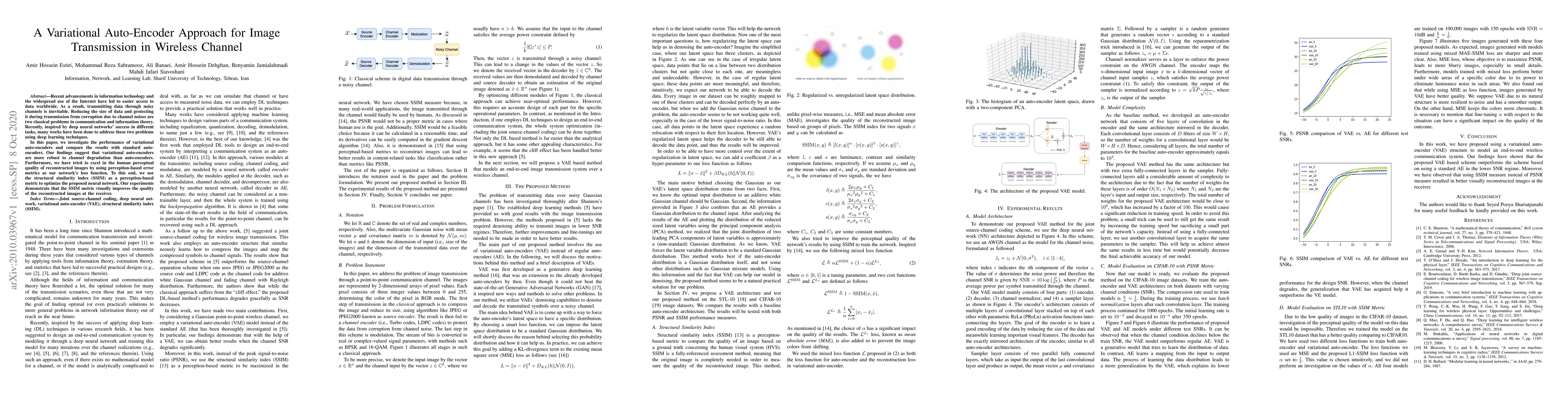 Researchers developed a method using variational auto-encoders to improve image transmission over noisy channels, achieving better results than traditional auto-encoders and enhancing visual quality through perception-based metrics.