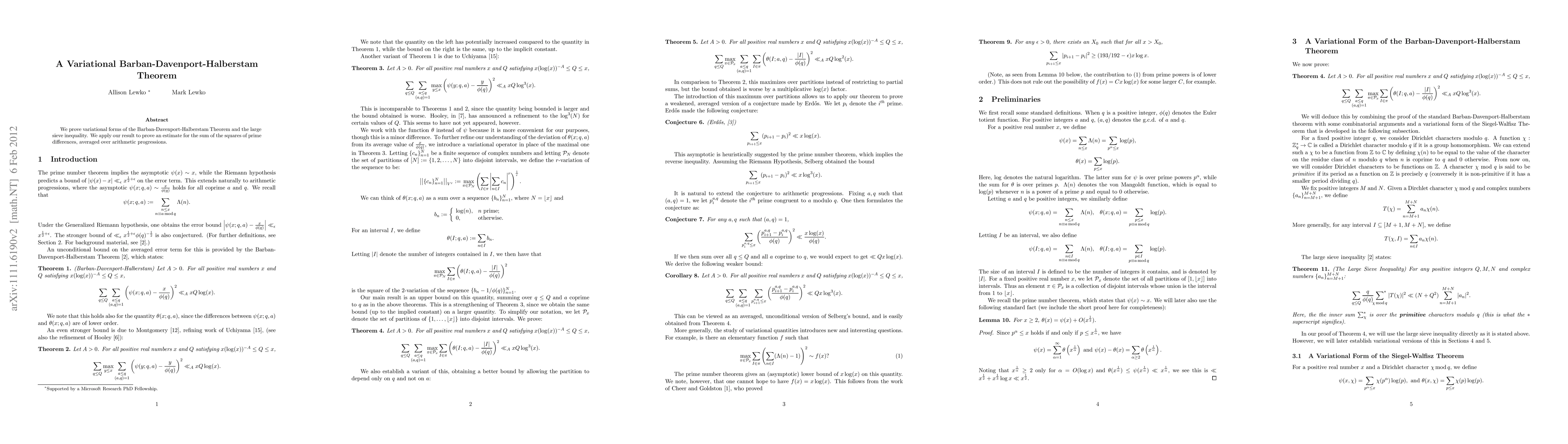 Researchers prove a variant of the Barban-Davenport-Halberstam Theorem, establishing a new estimate for the sum of squares of prime differences in arithmetic progressions.
