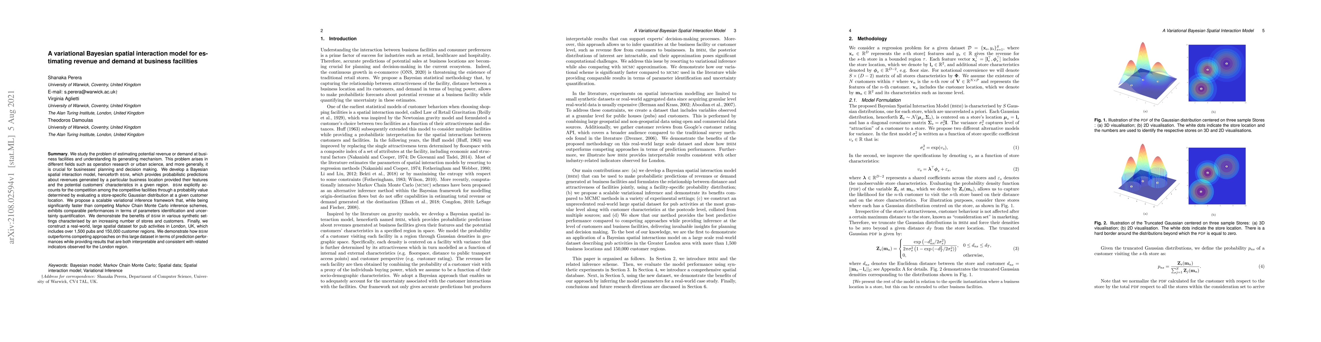 A new Bayesian spatial interaction model (BSIM) predicts revenue at business facilities based on features and customer characteristics, outperforming existing methods on real-world London pub data.