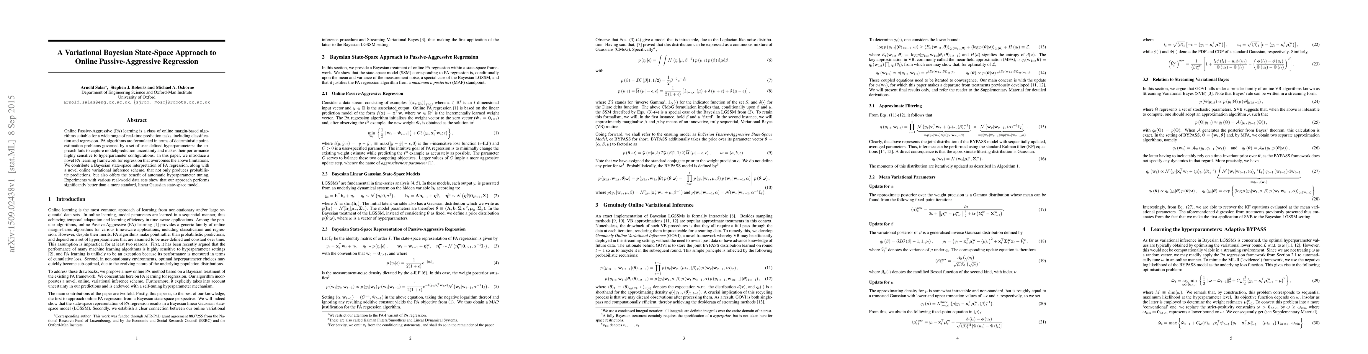 This paper proposes a Bayesian state-space approach for online Passive-Aggressive regression, introducing a variational inference scheme that provides probabilistic predictions and automatic hyperparameter tuning, outperforming traditional linear Gaussian models in real-world datasets.