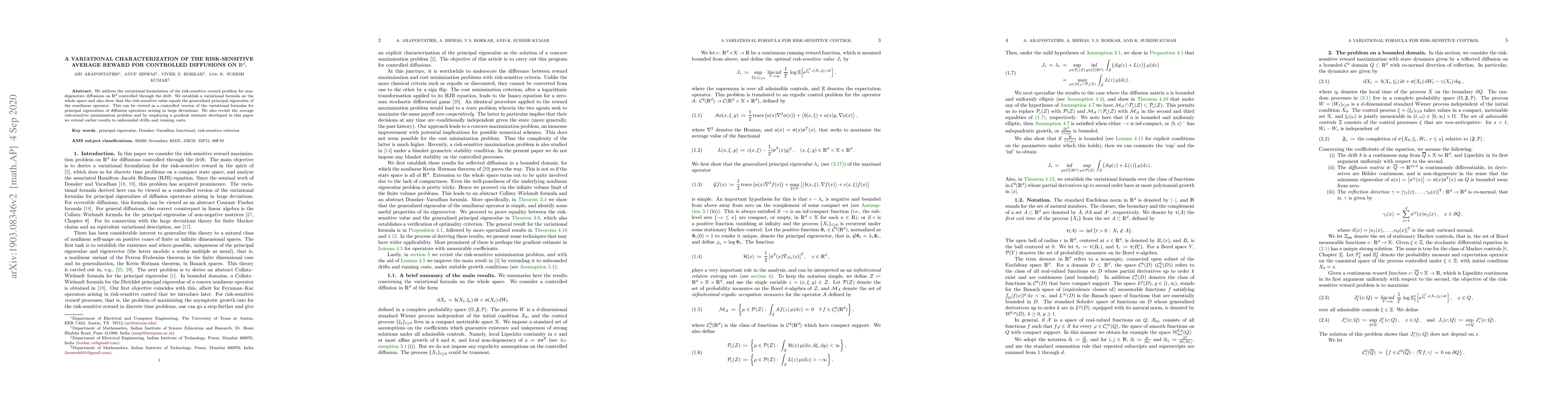 This paper presents a variational characterization of the risk-sensitive average reward for controlled diffusions on $\mathbb{R}^d$, establishing a formula that equates the risk-sensitive value to the generalized principal eigenvalue of a semilinear operator. It extends previous results to handle unbounded drifts and running costs using a new gradient estimate.
