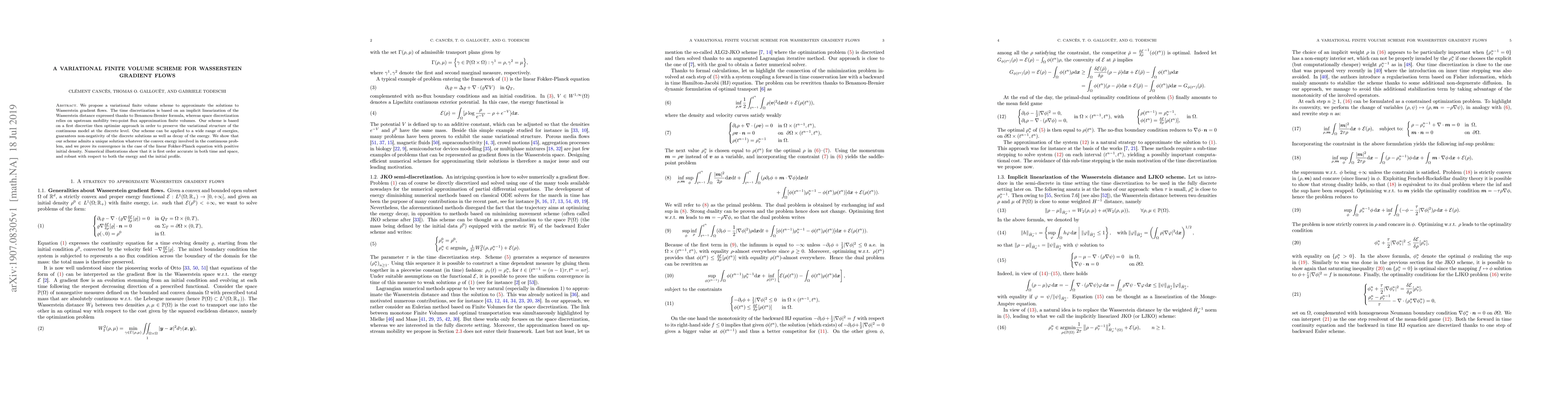 This paper introduces a variational finite volume scheme for approximating Wasserstein gradient flows, utilizing an implicit linearization of the Wasserstein distance and upstream mobility finite volumes. The scheme preserves the variational structure, guarantees non-negativity, and demonstrates convergence and first-order accuracy in numerical simulations.
