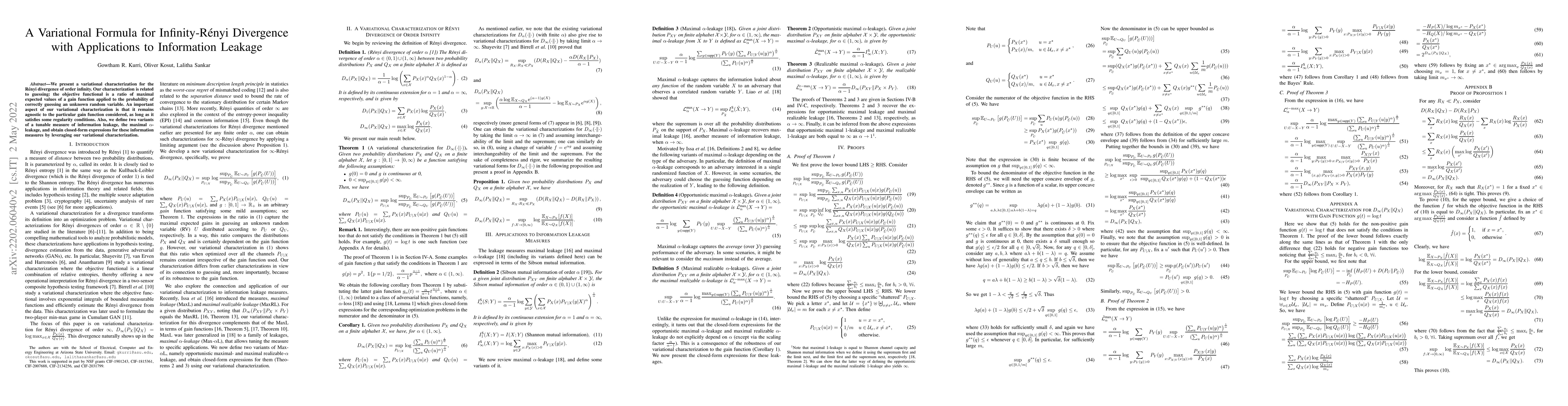 This paper introduces a variational formula for the infinity-Rényi divergence, linking it to guessing through a ratio of maximal expected values. It defines tunable measures of information leakage and derives closed-form expressions for these measures using the proposed variational characterization.