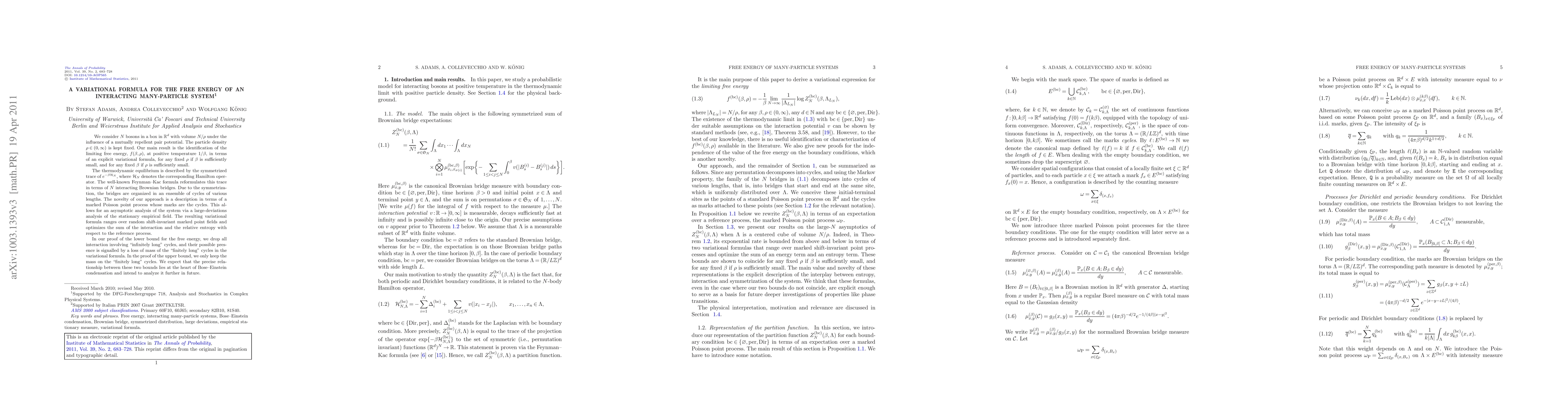Researchers developed a variational formula for the free energy of interacting many-particle systems, providing bounds on the limiting free energy that depend on temperature and particle density.