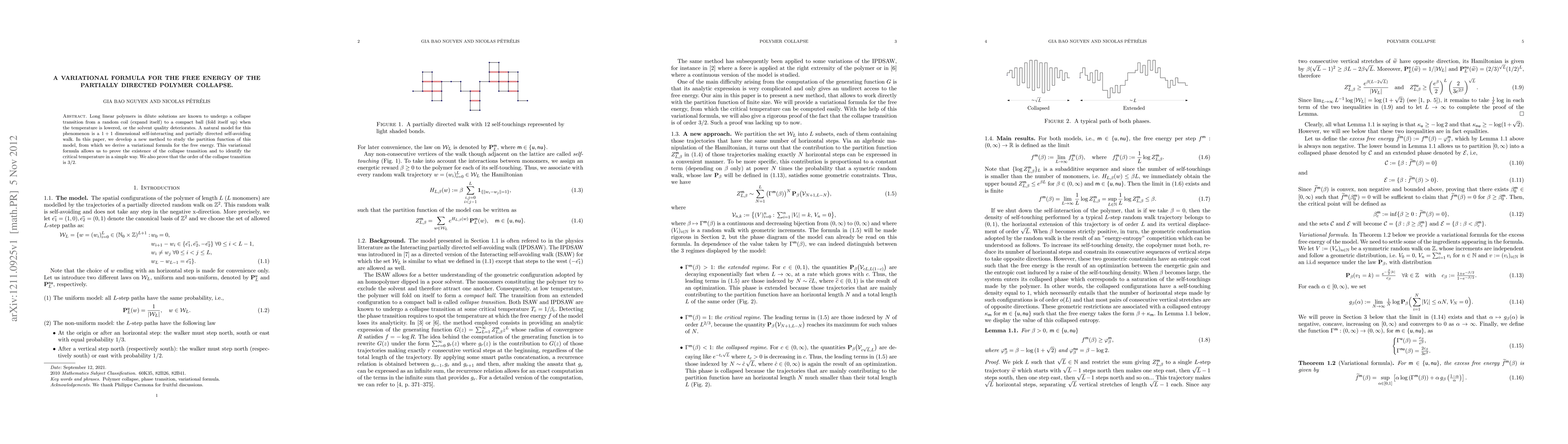 Researchers develop a new method to study the partition function of a model for polymer collapse, deriving a variational formula for free energy that proves the existence of a collapse transition and identifies its critical temperature.