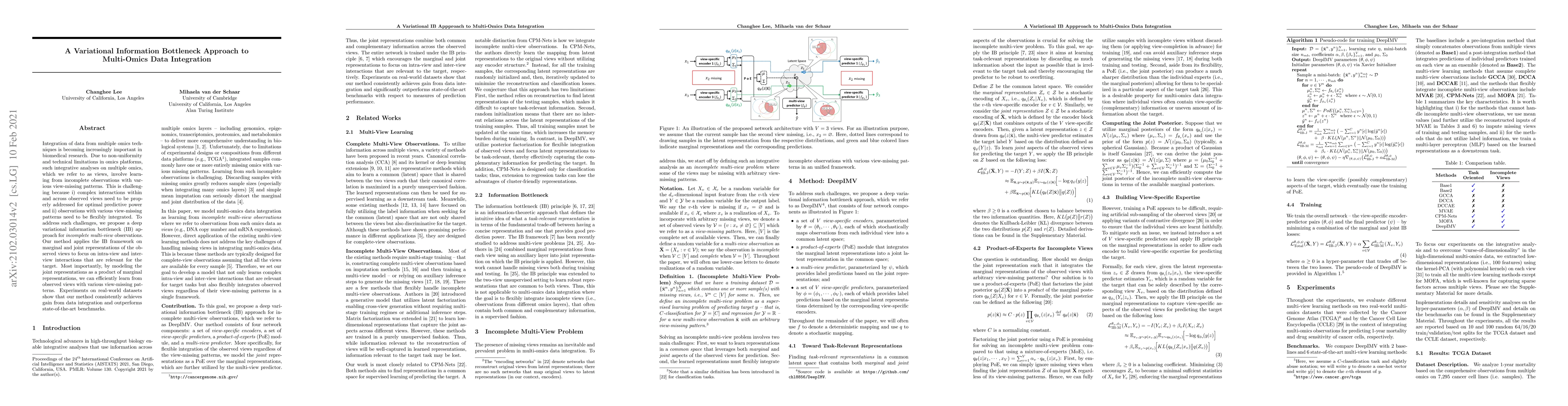 This paper proposes a deep variational information bottleneck approach to integrate multi-omics data, addressing challenges of incomplete observations and complex interactions across different omics views. The method efficiently learns from data with various missing patterns, achieving superior performance in real-world datasets.