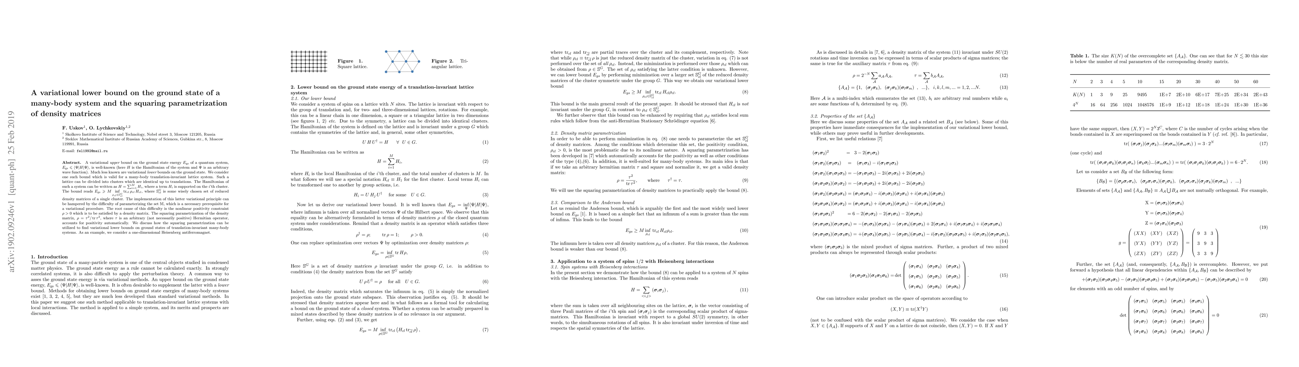 Researchers developed a new method to find lower bounds on the energy of many-body systems using a squaring parametrization of density matrices, providing a new tool for studying quantum systems.