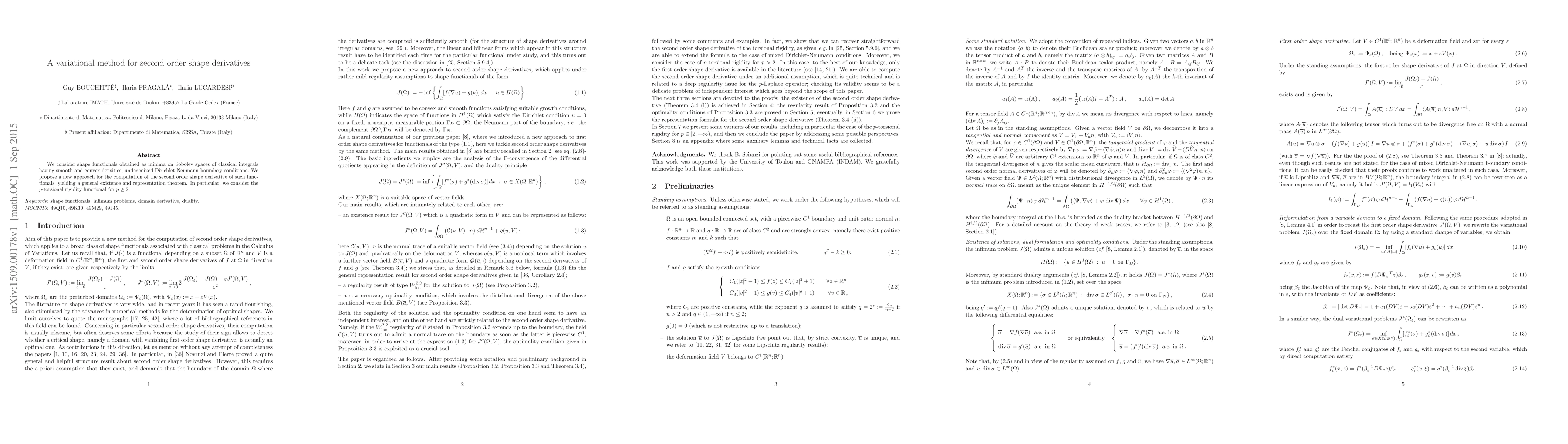 We consider shape functionals obtained as minima on Sobolev spaces of classical integrals having smooth and convex densities, under mixed Dirichlet-Neumann boundary conditions. We propose a new approach for the computation of the second order shape derivative of such functionals, yielding a general existence and representation theorem. In particular, we consider the p-torsional rigidity functional for p grater than or equal to 2.