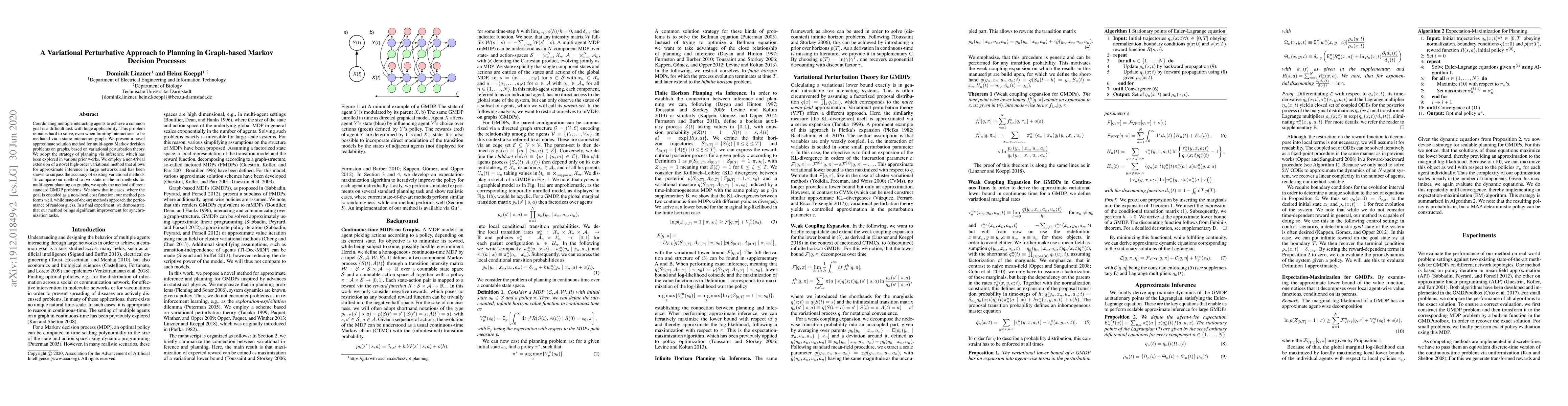 This paper introduces a novel variational perturbative approach for planning in multi-agent Markov decision processes on graph-based models, demonstrating superior performance over state-of-the-art methods, especially in non-local cost function scenarios and synchronization tasks. The method leverages an advanced high-order variational inference technique.