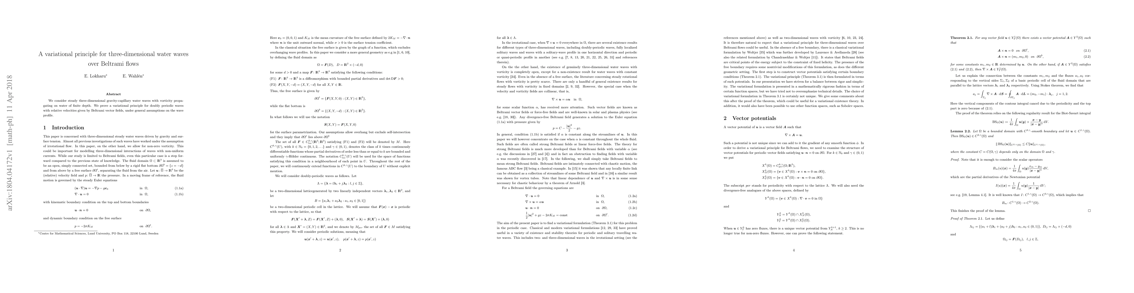 Summary: This paper establishes a variational principle for three-dimensional water waves with vorticity over Beltrami flows, demonstrating that doubly periodic waves with specific relative velocities can be described using a variational framework under general wave profile conditions.