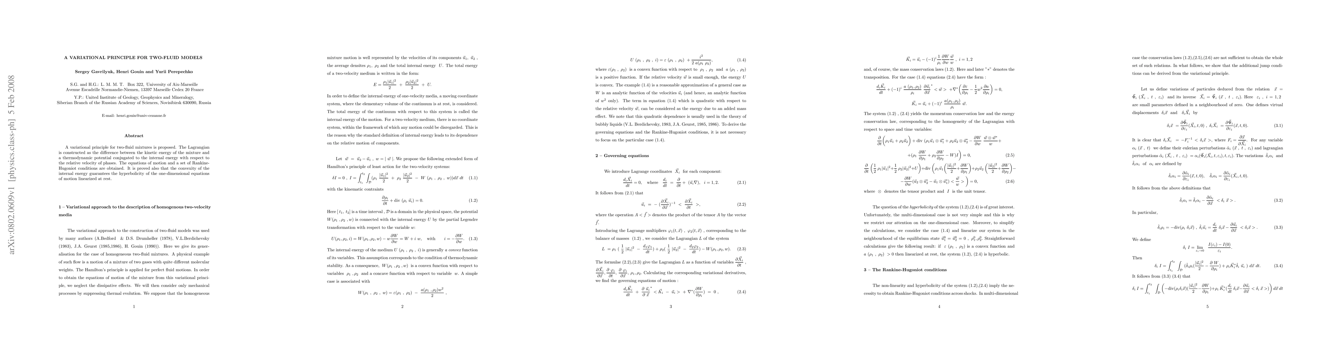 A new variational principle is proposed for two-fluid mixtures, linking kinetic energy to a thermodynamic potential that ensures the system's equations of motion satisfy specific conditions for hyperbolicity.