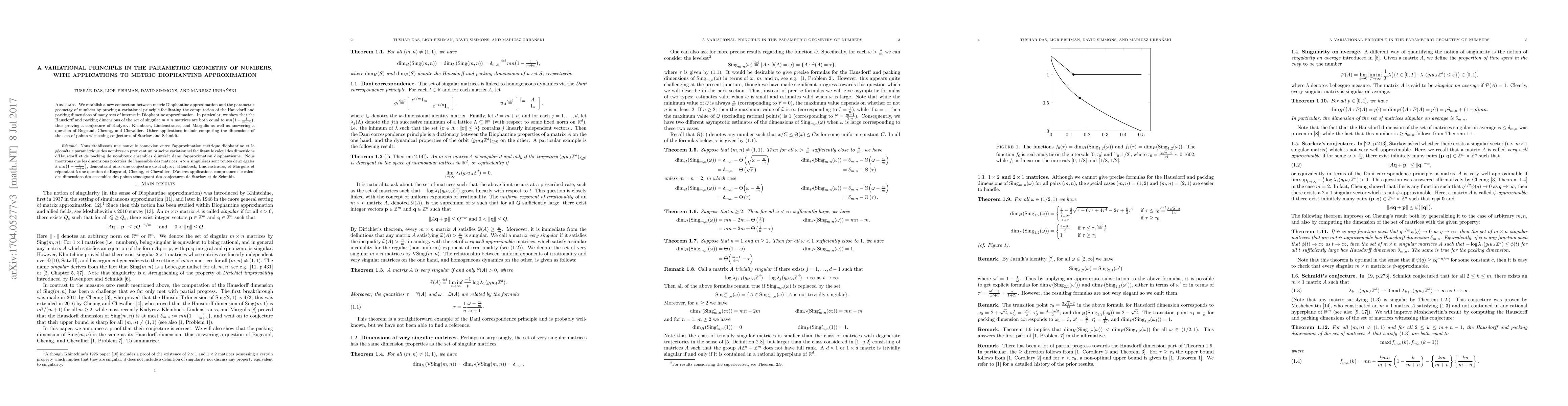 We establish a new connection between metric Diophantine approximation and the parametric geometry of numbers by proving a variational principle facilitating the computation of the Hausdorff and packing dimensions of many sets of interest in Diophantine approximation. In particular, we show that the Hausdorff and packing dimensions of the set of singular $m\times n$ matrices are both equal to $mn \big(1-\frac1{m+n}\big)$, thus proving a conjecture of Kadyrov, Kleinbock, Lindenstrauss, and Margulis (preprint 2014) as well as answering a question of Bugeaud, Cheung, and Chevallier (preprint 2016). We introduce the notion of a $template$, which generalizes the notion of a $rigid$ $system$ (Roy, 2015) to the setting of matrix approximation. Our main theorem takes the following form: for any class of templates $\mathcal F$ closed under finite perturbations, the Hausdorff and packing dimensions of the set of matrices whose successive minima functions are members of $\mathcal F$ (up to finite perturbation) can be written as the suprema over $\mathcal F$ of certain natural functions on the space of templates. Besides implying KKLM's conjecture, this theorem has many other applications including computing the Hausdorff and packing dimensions of the set of points witnessing a conjecture of Starkov (2000), and of the set of points witnessing a conjecture of Schmidt (1983).