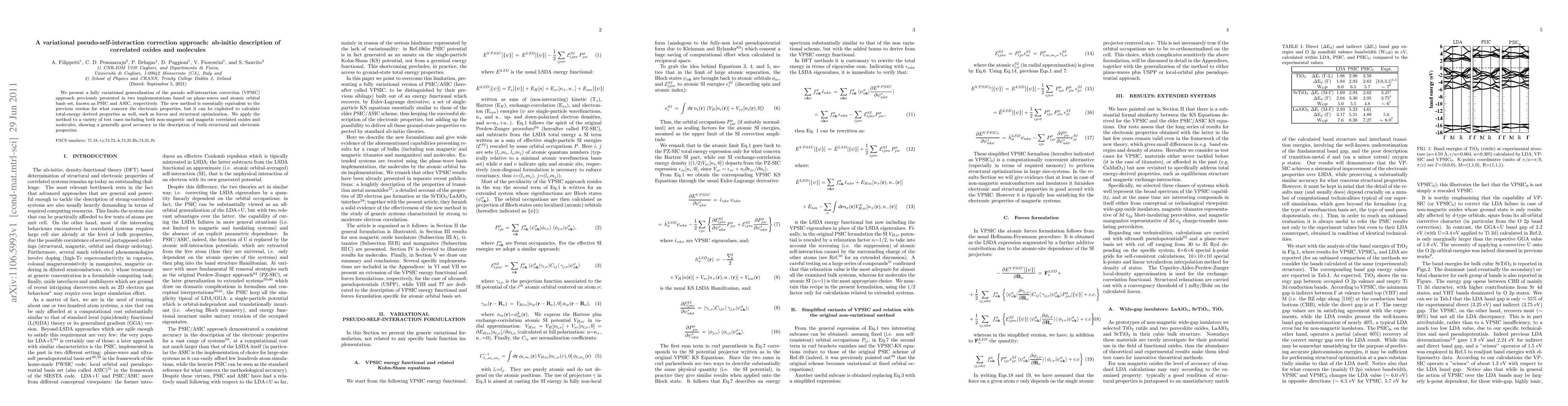 This paper introduces a variational pseudo-self-interaction correction (VPSIC) approach for ab-initio calculations, providing a fully variational generalization of previous PSIC and ASIC methods. The VPSIC approach accurately describes both structural and electronic properties of correlated oxides and molecules, enabling the calculation of total-energy derived properties like forces and structural optimization.