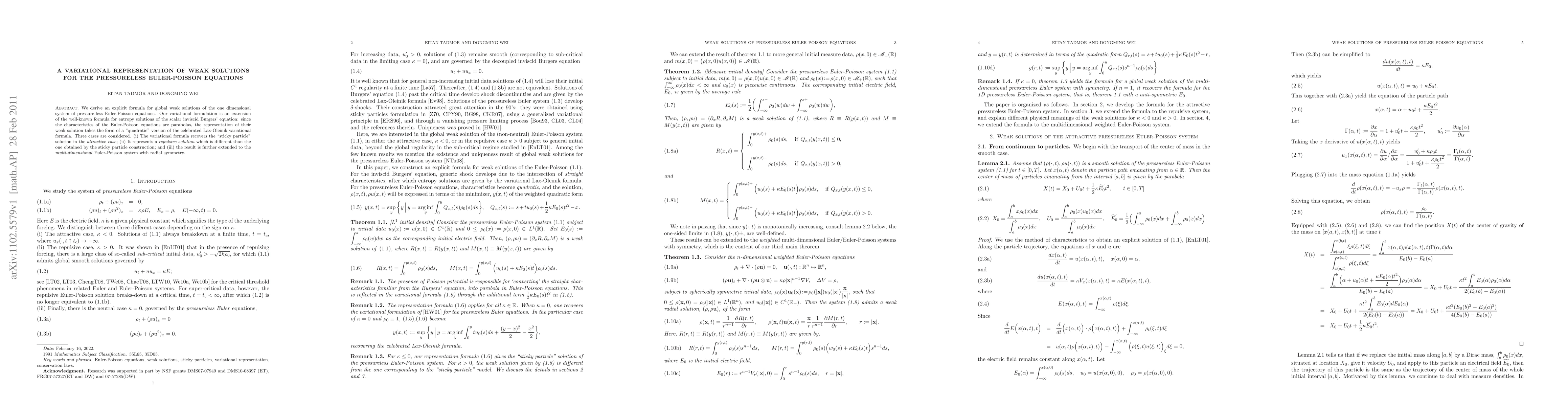 The research derives an explicit formula for global weak solutions of the one-dimensional system of pressureless Euler-Poisson equations, extending the variational formulation for entropy solutions of the scalar inviscid Burgers' equation.