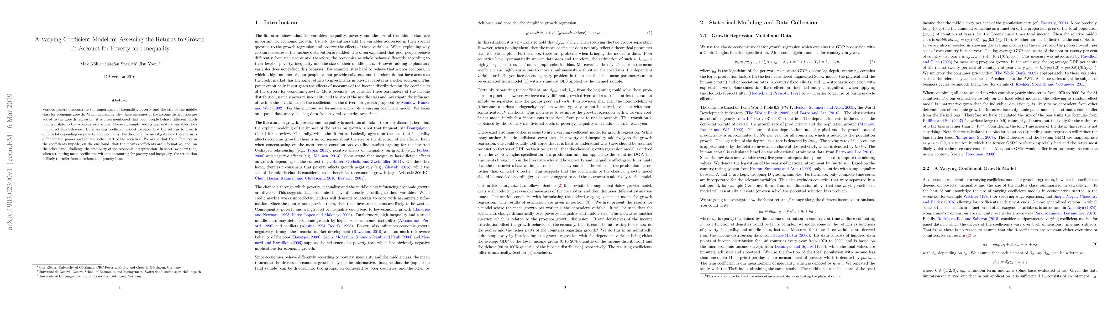 Various papers demonstrate the importance of inequality, poverty and the size of the middle class for economic growth. When explaining why these measures of the income distribution are added to the growth regression, it is often mentioned that poor people behave different which may translate to the economy as a whole. However, simply adding explanatory variables does not reflect this behavior. By a varying coefficient model we show that the returns to growth differ a lot depending on poverty and inequality. Furthermore, we investigate how these returns differ for the poorer and for the richer part of the societies. We argue that the differences in the coefficients impede, on the one hand, that the means coefficients are informative, and, on the other hand, challenge the credibility of the economic interpretation. In short, we show that, when estimating mean coefficients without accounting for poverty and inequality, the estimation is likely to suffer from a serious endogeneity bias.