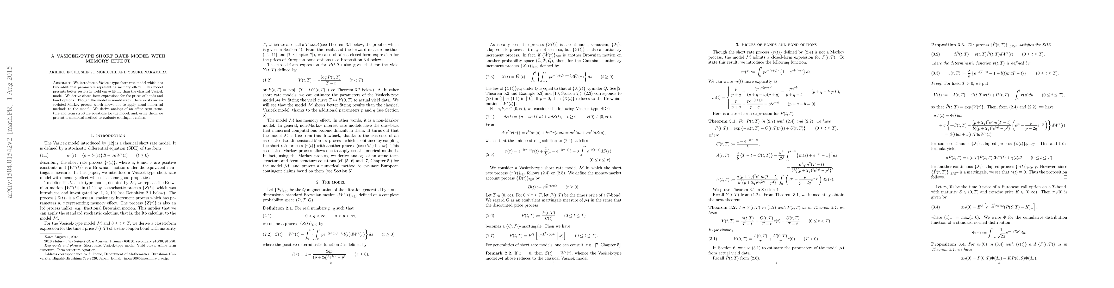 A new short rate model with memory effect improves yield curve fitting compared to classical models, enabling closed-form expressions for bond prices and options.