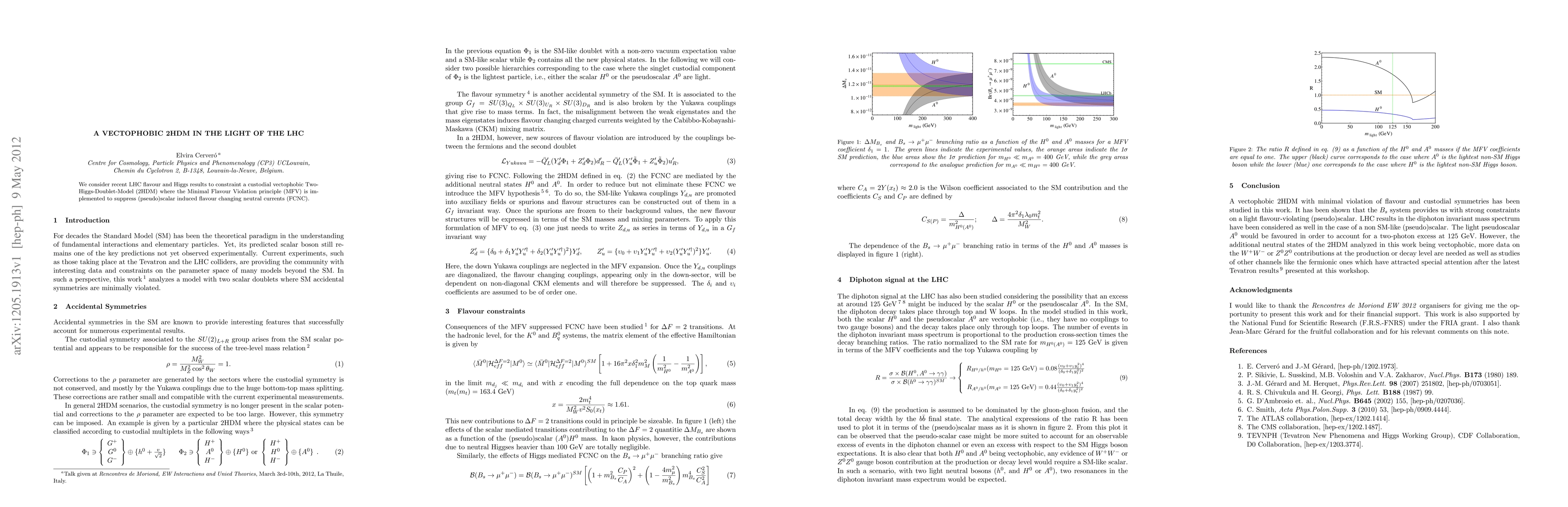 The paper examines a specific Two-Higgs-Doublet-Model (2HDM), termed 'vectophobic', under recent LHC findings. It uses the Minimal Flavour Violation (MFV) principle to reduce unwanted flavour-changing processes, thereby constraining the model's parameters.