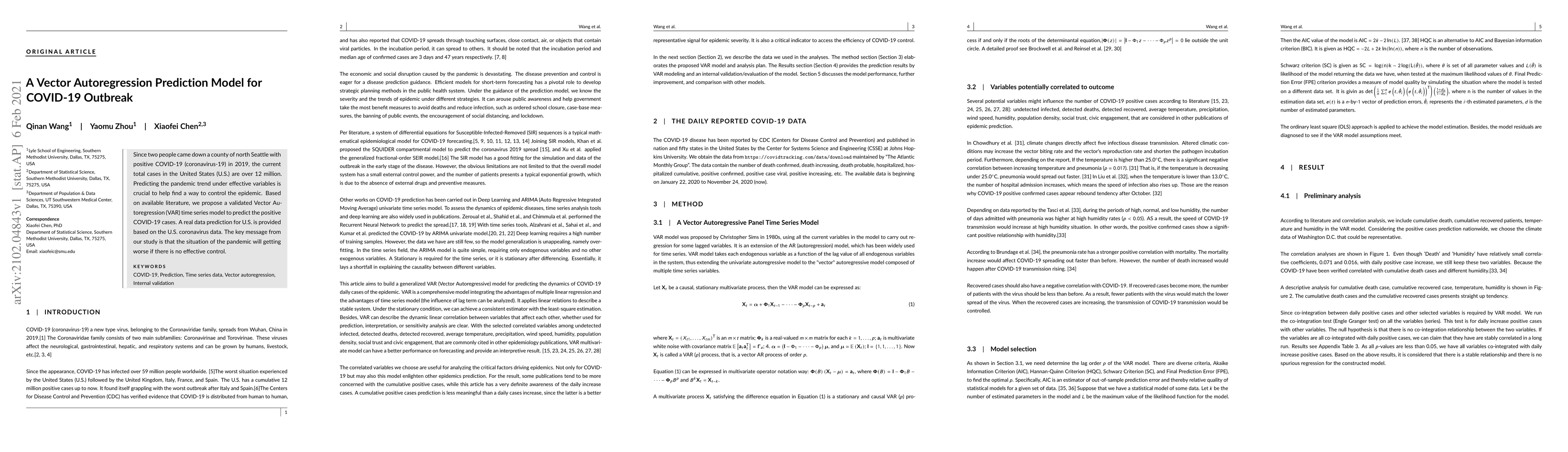 A study proposes a Vector Autoregression model to predict COVID-19 cases in the US, warning that without effective control measures, the pandemic will worsen.