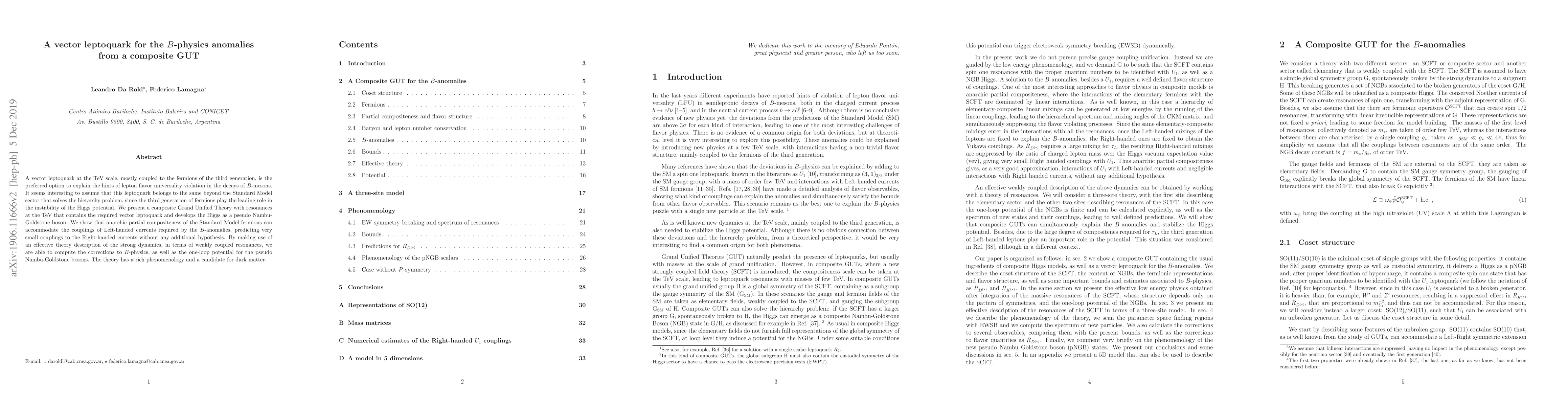 This paper proposes a vector leptoquark at the TeV scale to explain B-meson decay anomalies, suggesting it belongs to a composite Grand Unified Theory that also addresses the hierarchy problem. The model predicts minimal right-handed current couplings and includes a rich phenomenology with a dark matter candidate.