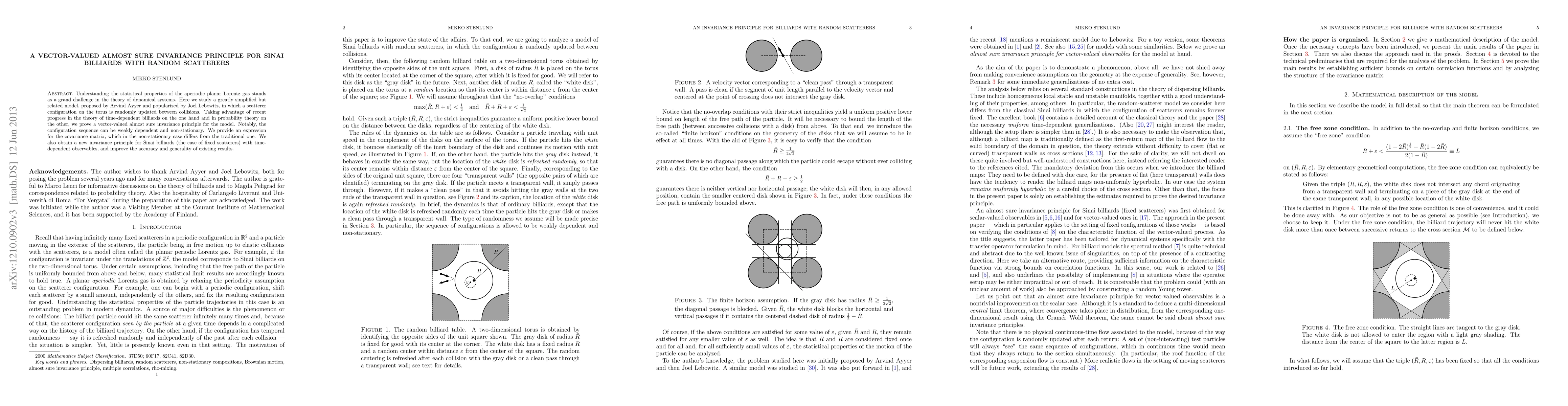 This paper proves a vector-valued almost sure invariance principle for a simplified Sinai billiard model with random scatterers, leveraging advancements in time-dependent billiard theory and probability. It also extends the principle to Sinai billiards with time-dependent observables, providing a new covariance matrix expression for non-stationary configurations.