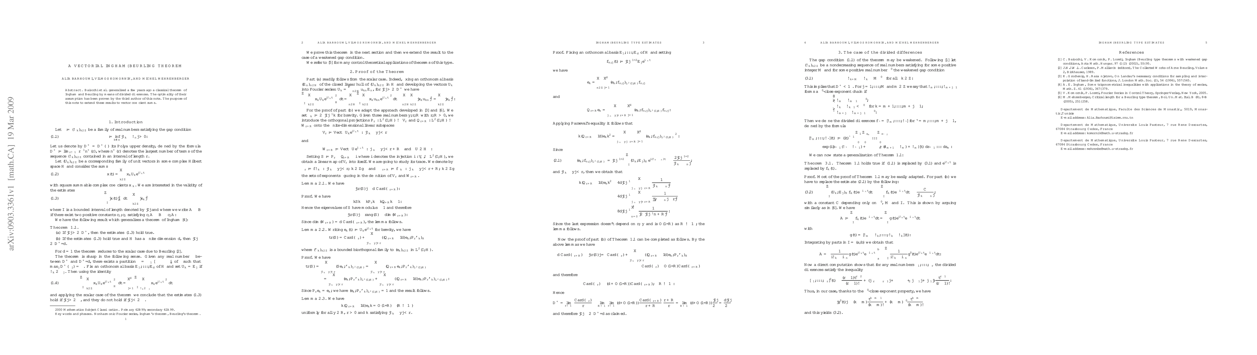 This paper extends the generalized Ingham-Beurling theorem to vector coefficient sums using divided differences, proving the optimality of the assumptions made by the authors. The focus is on establishing the theorem's applicability in a vectorial context.