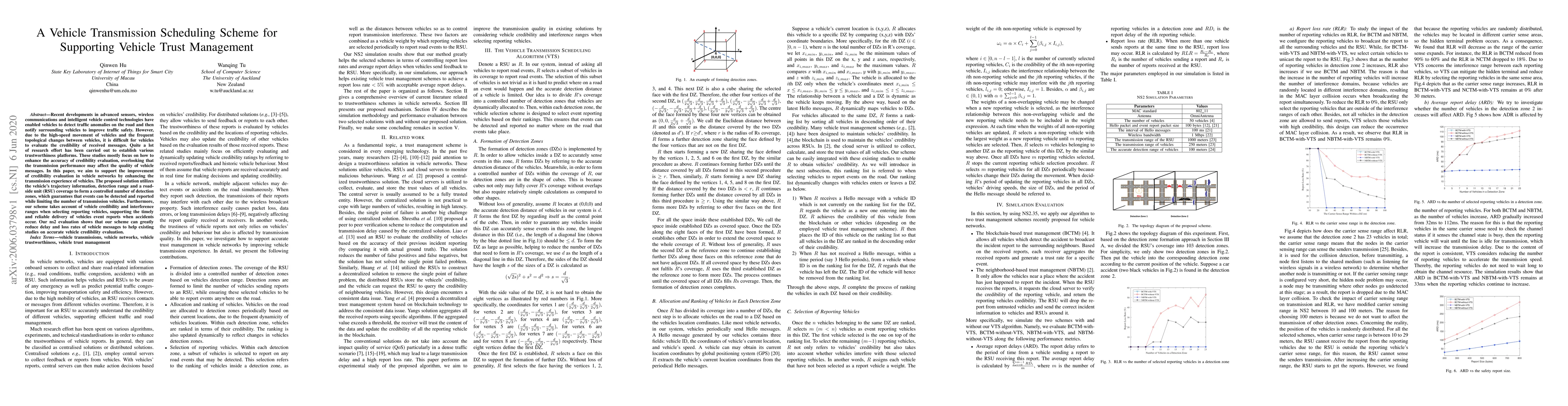 Recent developments in advanced sensors, wireless communications and intelligent vehicle control technologies have enabled vehicles to detect traffic anomalies on the road and then notify surrounding vehicles to improve traffic safety. However, due to the high-speed movement of vehicles and the frequent topological changes between vehicles, it is difficult for vehicles to evaluate the credibility of received messages. Quite a lot of research effort has been carried out to establish various trustworthiness platforms. These studies mostly focus on how to enhance the accuracy of credibility evaluation, overlooking that the transmission performance may affect the quality of vehicle messages. In this paper, we aim to support the improvement of credibility evaluation in vehicle networks by enhancing the transmission experience of vehicles. The proposed solution utilizes the vehicle's trajectory information, detection range and a roadside unit (RSU) coverage to form a controlled number of detection zones, which guarantees that events can be detected and reported while limiting the number of transmission vehicles. Furthermore, our scheme takes account of vehicle credibility and interference ranges when selecting reporting vehicles, supporting the timely and reliable delivery of vehicles' event reports when accidents occur. Our ns2 evaluation shows that our scheme can greatly reduce delay and loss rates of vehicle messages to help existing studies on accurate vehicle credibility evaluation.