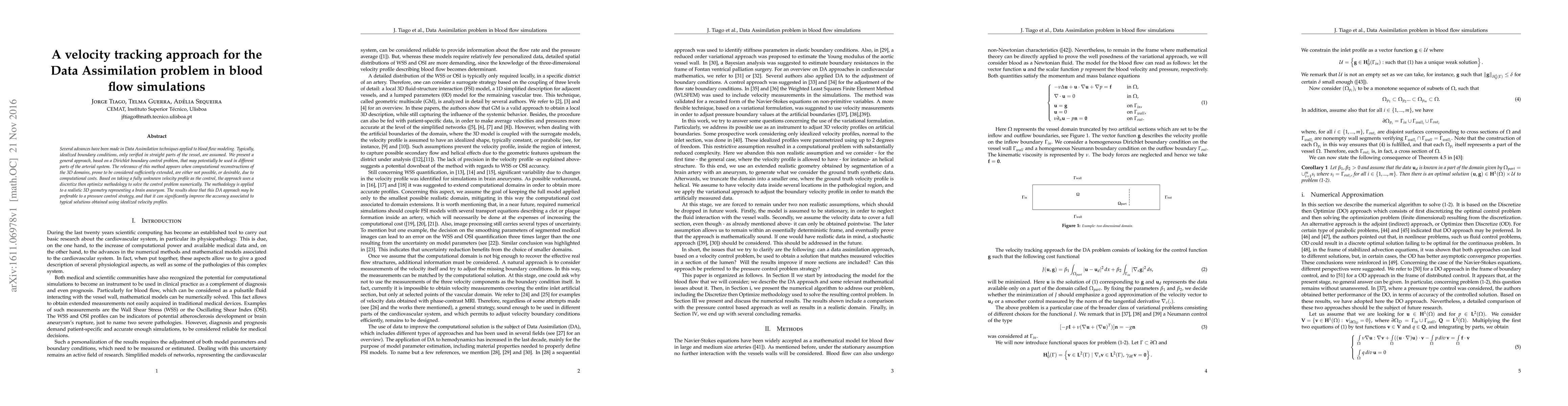 This paper proposes a novel velocity tracking approach for data assimilation in blood flow simulations, based on a Dirichlet boundary control problem. The method, applied to a realistic 3D brain aneurysm geometry, demonstrates improved accuracy over traditional pressure control strategies, especially when computational reconstructions are impractical or costly.
