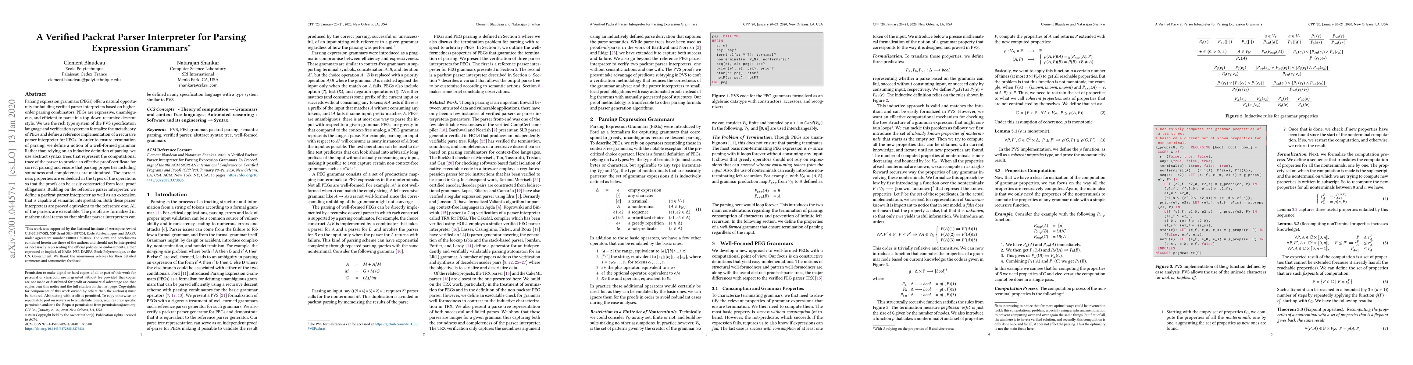Researchers developed a verified parser interpreter for Parsing Expression Grammars (PEGs) using higher-order parsing combinators, ensuring correct parsing and maintaining soundness and completeness properties.