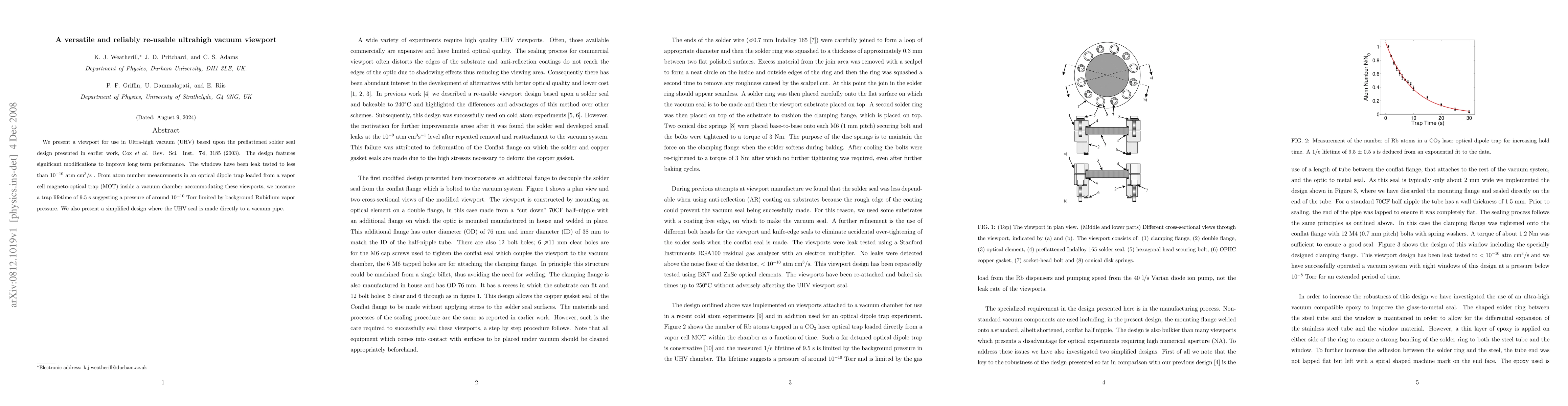 We present a viewport for use in Ultra-high vacuum (UHV) based upon the preflattened solder seal design presented in earlier work, Cox et al. Rev. Sci. Inst. 74, 3185 (2003). The design features significant modifications to improve long term performance. The windows have been leak tested to less than 10^-10 atm cm^3/s . From atom number measurements in an optical dipole trap loaded from a vapor cell magneto-optical trap (MOT) inside a vacuum chamber accommodating these viewports, we measure a trap lifetime of 9.5s suggesting a pressure of around 10^-10 Torr limited by background Rubidium vapor pressure. We also present a simplified design where the UHV seal is made directly to a vacuum pipe