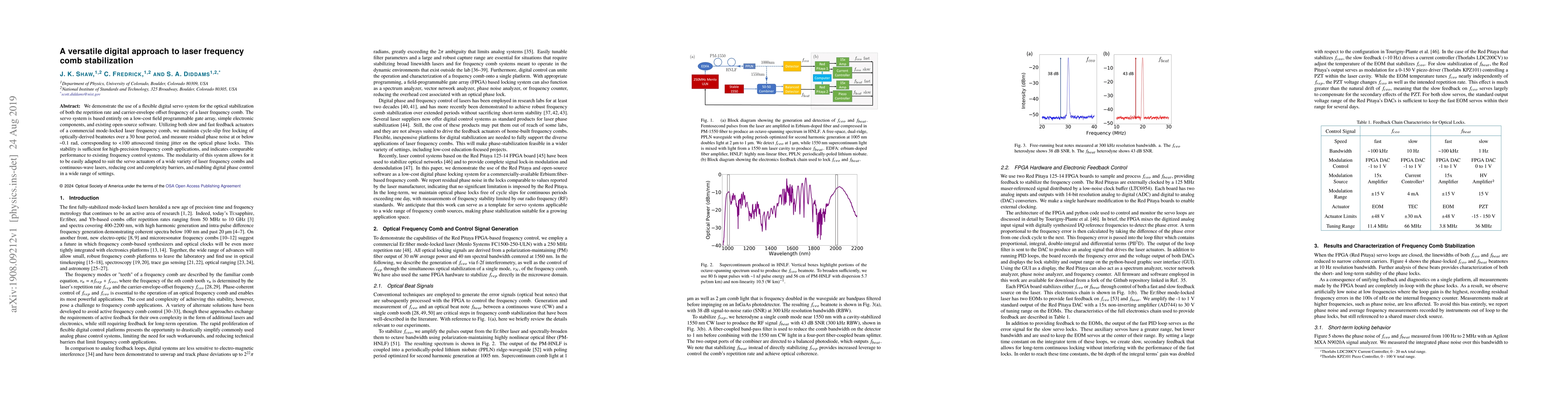 We demonstrate the use of a flexible digital servo system for the optical stabilization of both the repetition rate and carrier-envelope offset frequency of a laser frequency comb. The servo system is based entirely on a low-cost field programmable gate array, simple electronic components, and existing open-source software. Utilizing both slow and fast feedback actuators of a commercial mode-locked laser frequency comb, we maintain cycle-slip free locking of optically-derived beatnotes over a 30 hour period, and measure residual phase noise at or below ~0.1 rad, corresponding to <100 attosecond timing jitter on the optical phase locks. This stability is sufficient for high-precision frequency comb applications, and indicates comparable performance to existing frequency control systems. The modularity of this system allows for it to be easily adapted to suit the servo actuators of a wide variety of laser frequency combs and continuous-wave lasers, reducing cost and complexity barriers, and enabling digital phase control in a wide range of settings.