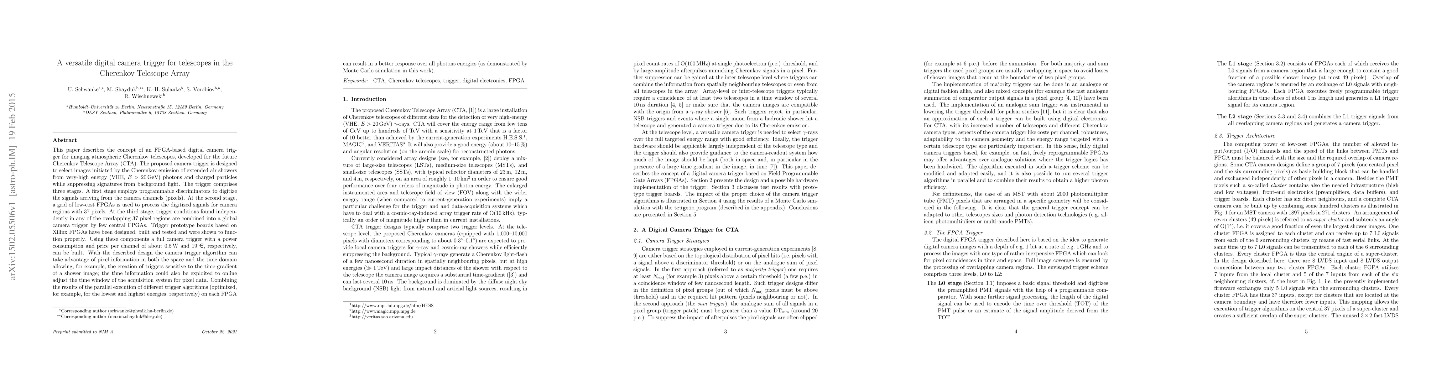 This paper presents an FPGA-based digital camera trigger for Cherenkov Telescope Array (CTA) imaging, designed to select high-energy photon and particle signals while suppressing background noise. The trigger employs programmable discriminators, low-cost FPGAs, and a global camera trigger system, demonstrating efficient power consumption and cost-effectiveness.