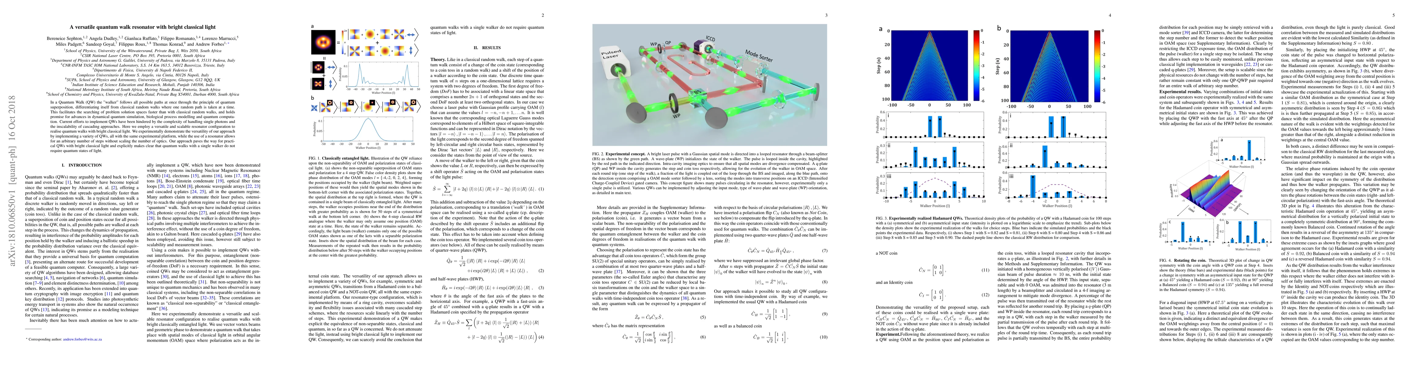 In a Quantum Walk (QW) the "walker" follows all possible paths at once through the principle of quantum superposition, differentiating itself from classical random walks where one random path is taken at a time. This facilitates the searching of problem solution spaces faster than with classical random walks, and holds promise for advances in dynamical quantum simulation, biological process modelling and quantum computation. Current efforts to implement QWs have been hindered by the complexity of handling single photons and the inscalability of cascading approaches. Here we employ a versatile and scalable resonator configuration to realise quantum walks with bright classical light. We experimentally demonstrate the versatility of our approach by implementing a variety of QWs, all with the same experimental platform, while the use of a resonator allows for an arbitrary number of steps without scaling the number of optics. Our approach paves the way for practical QWs with bright classical light and explicitly makes clear that quantum walks with a single walker do not require quantum states of light.