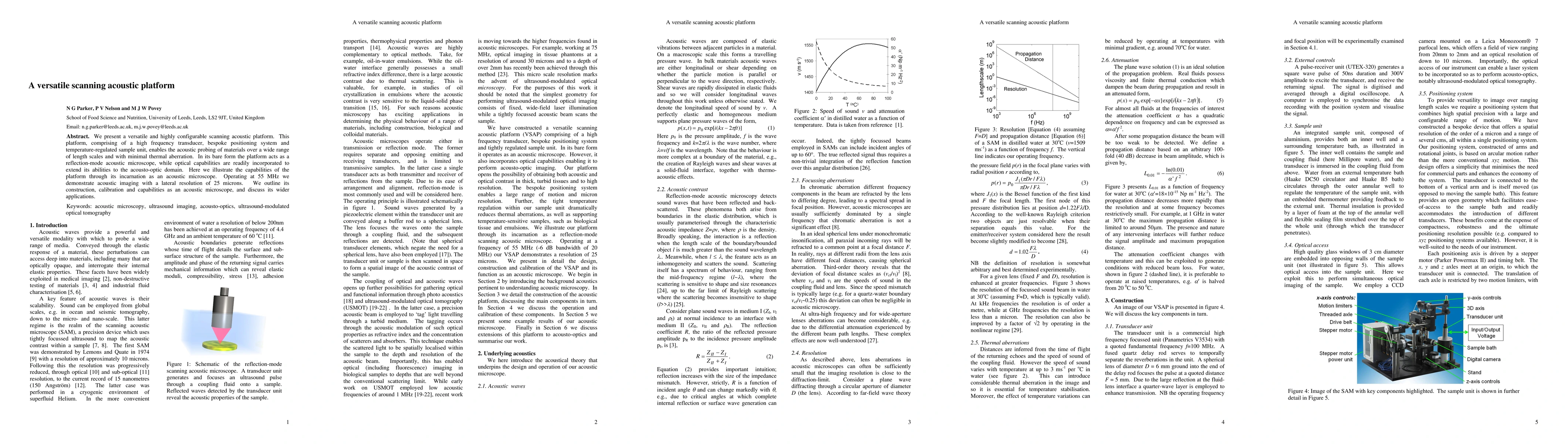 This paper introduces a highly configurable scanning acoustic platform featuring a high-frequency transducer and a bespoke positioning system, enabling precise acoustic imaging with minimal thermal aberration. Demonstrated as an acoustic microscope, it achieves a lateral resolution of 25 microns at 55 MHz, showcasing its versatility and potential for acousto-optic applications.