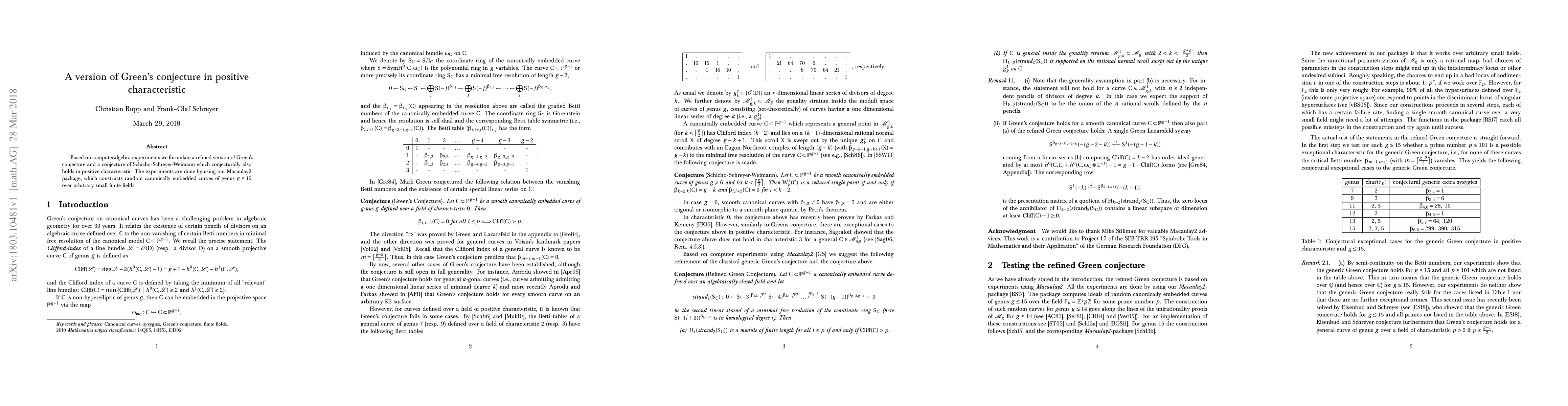 Two-line summary: This paper proposes a refined version of Green's conjecture and a related conjecture by Schicho-Schreyer-Weimann, based on computational experiments using a Macaulay2 package to generate random canonically embedded curves over finite fields, suggesting their validity in positive characteristic. The conjectures extend existing results to broader algebraic settings.