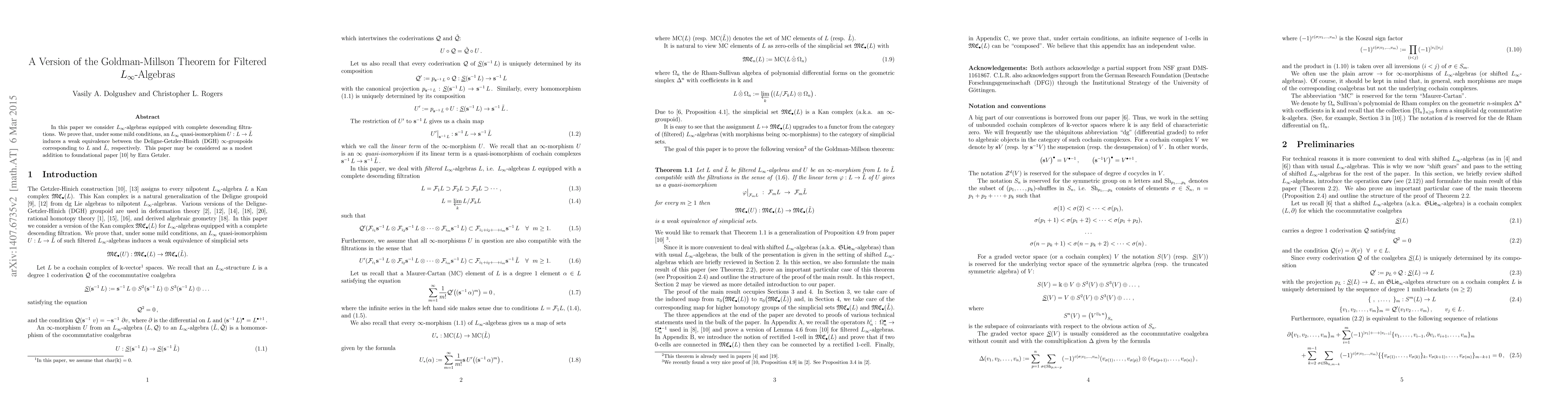 In this paper we consider $L_{\infty}$-algebras equipped with complete descending filtrations. We prove that, under some mild conditions, an $L_{\infty}$ quasi-isomorphism $U: L \to \tilde{L}$ induces a weak equivalence between the Deligne-Getzler-Hinich (DGH) $\infty$-groupoids corresponding to $L$ and $\tilde{L}$, respectively. This paper may be considered as a modest addition to foundational paper arXiv:math/0404003 by Ezra Getzler.
