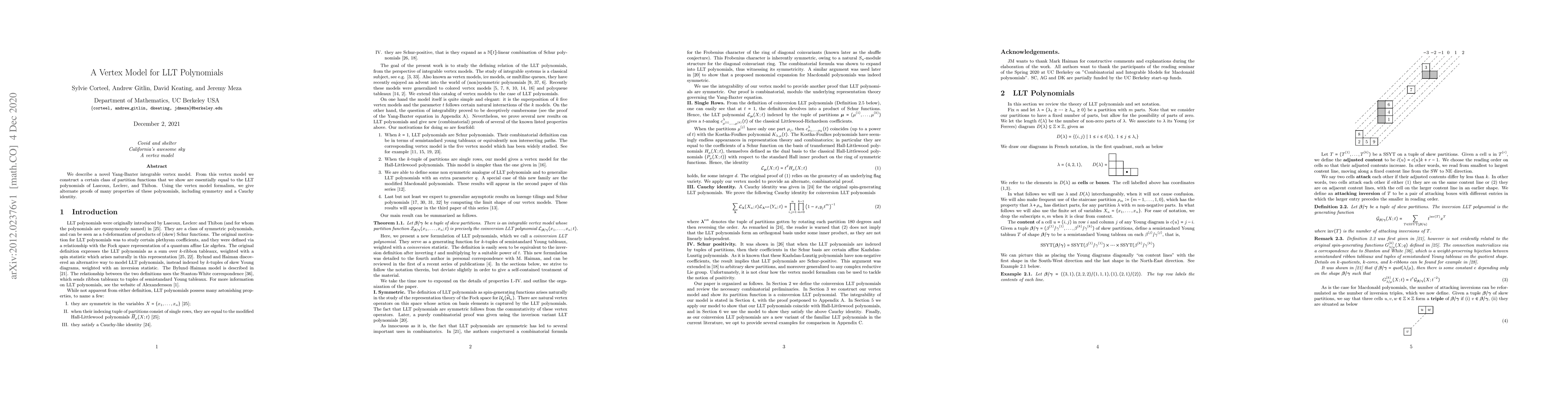 Researchers develop a new vertex model that constructs partition functions equal to Lascoux, Leclerc, and Thibon's LLT polynomials, providing alternate proofs of properties like symmetry and Cauchy identities.