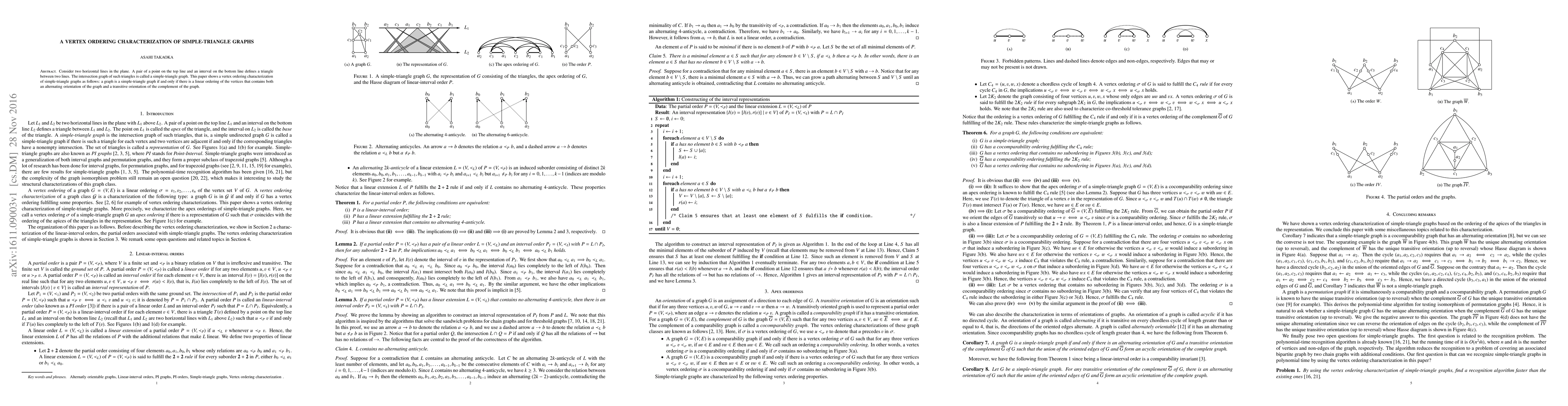 This paper characterizes simple-triangle graphs through vertex ordering, proving that a graph is a simple-triangle graph if and only if it admits a linear ordering of vertices that supports both an alternating orientation and a transitive orientation of its complement.