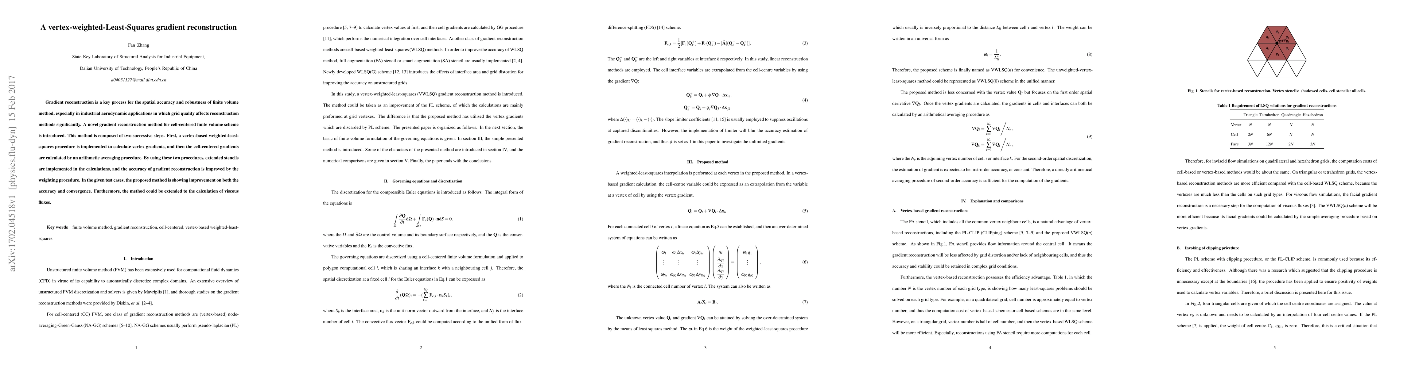 This paper introduces a novel vertex-weighted-least-squares gradient reconstruction method for cell-centered finite volume schemes, improving accuracy and convergence through extended stencils and weighting procedures. The method is shown to enhance spatial accuracy and robustness in industrial aerodynamic applications.