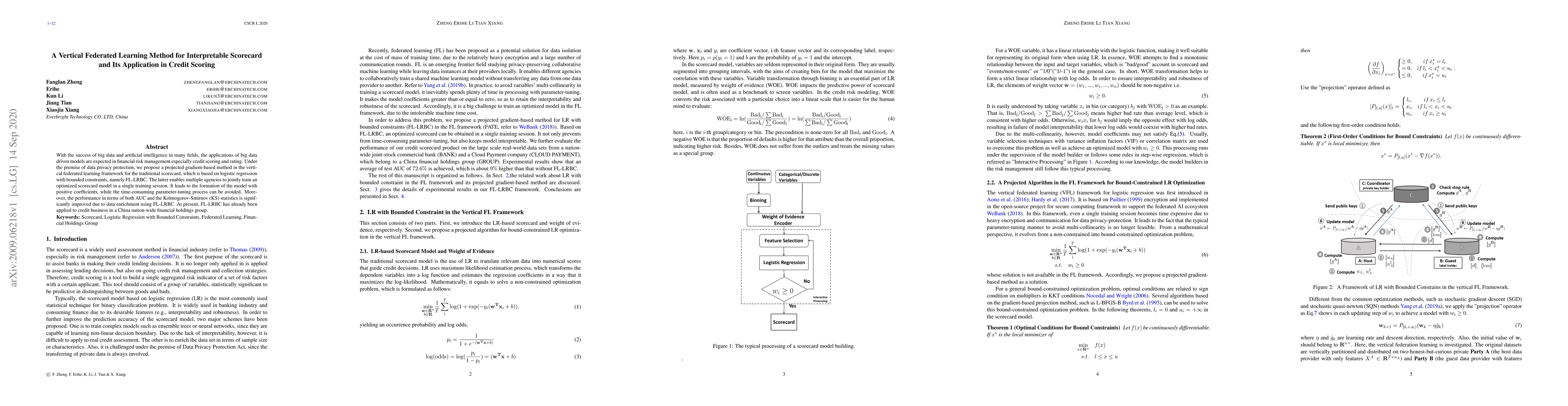 This paper proposes a vertical federated learning method, FL-LRBC, to collaboratively train interpretable scorecard models for credit scoring while ensuring data privacy. The method improves performance in AUC and KS statistics through data enrichment, and has been successfully applied in a nationwide credit scoring system in China.